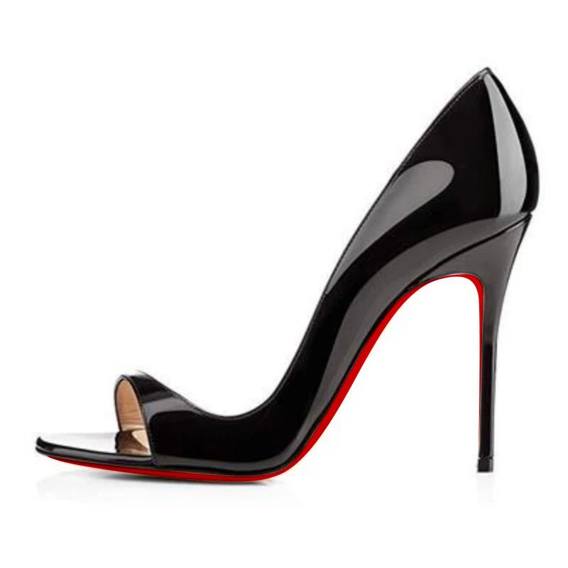 Side empty black fish mouth slim heel red sole fashion shoes for spring