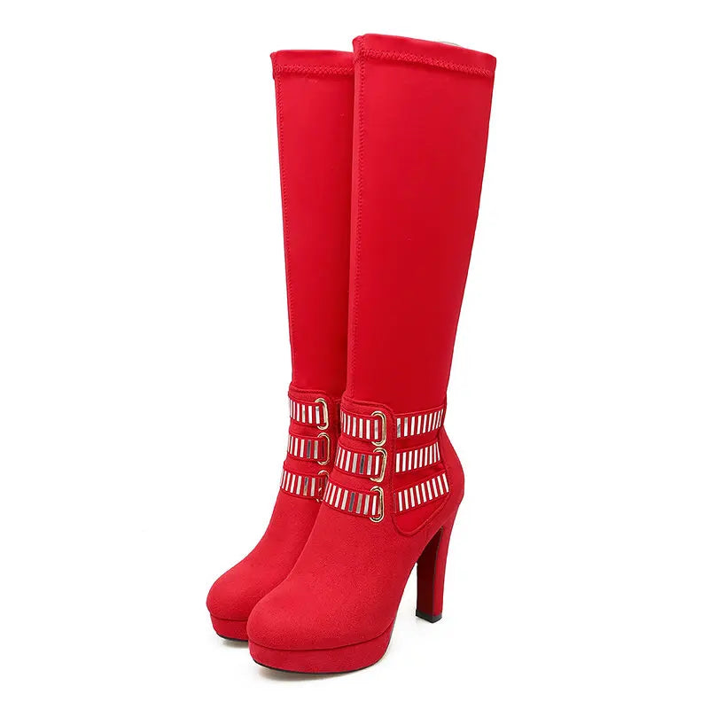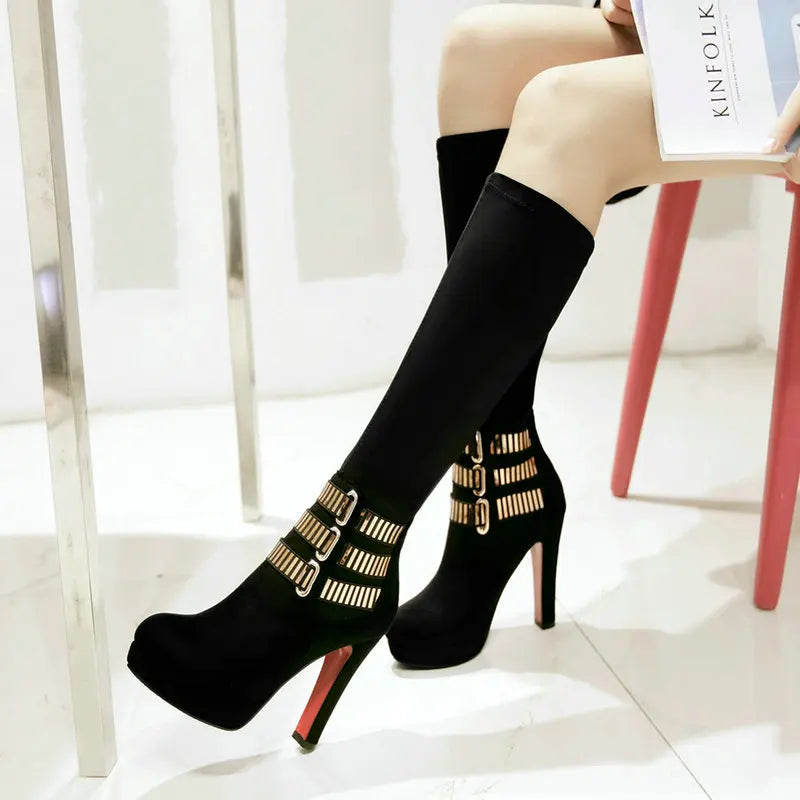 Knee High Boots Women Calf Boots Platform Square Heel Ladies Women's Winter Boots