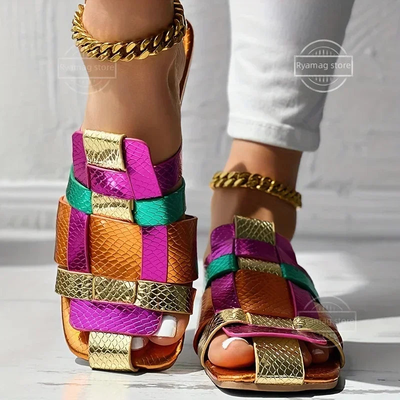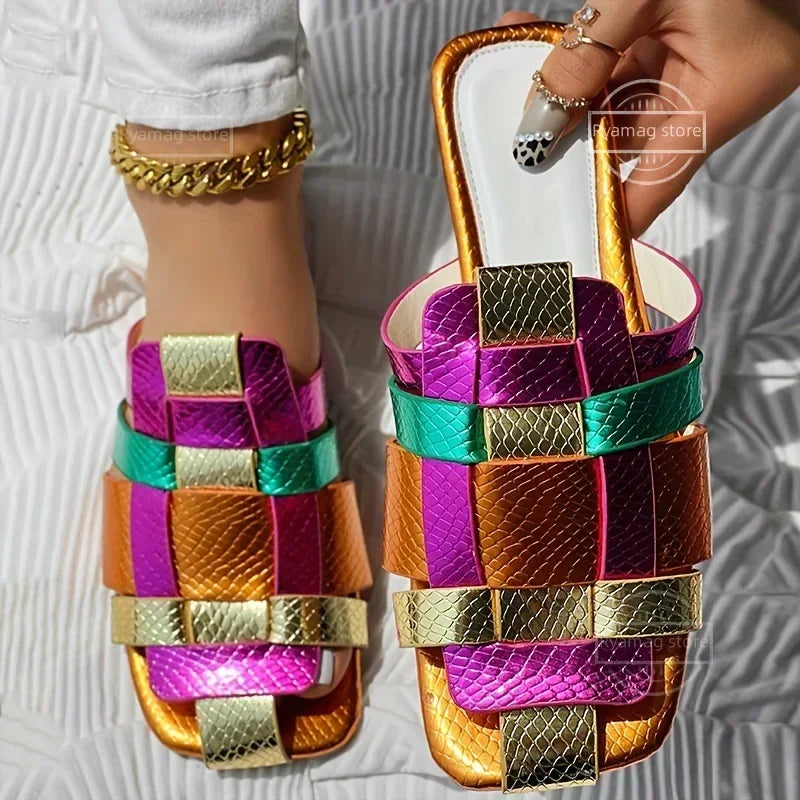 Slippers Women's Colorful Woven Slide Sandals Flat Summer Slides Women Flats Sandals Flip Flops Mules Colored Shoes Mujer Beach