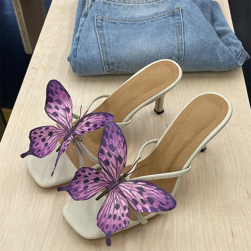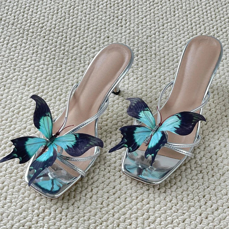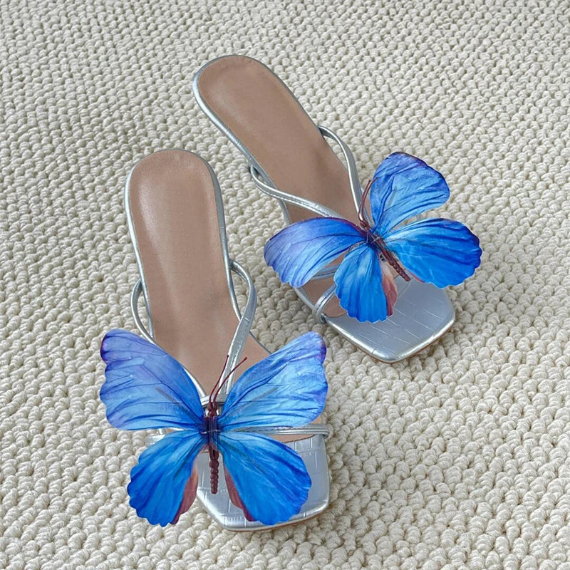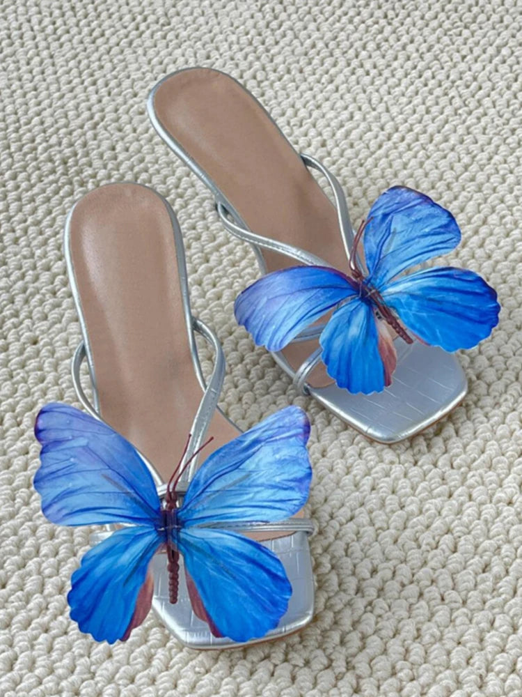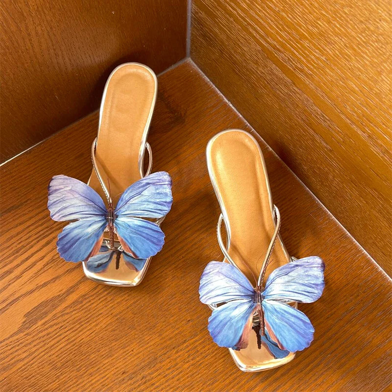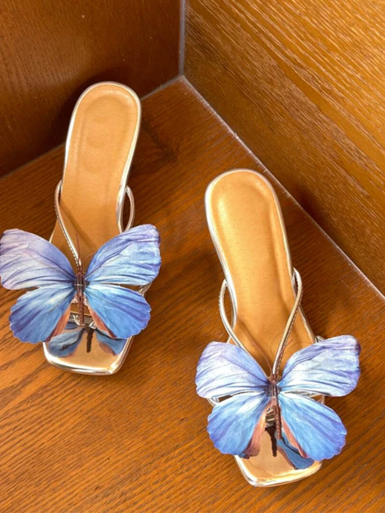 Small niche design butterfly sandals for women, summer new style with exposed toes and low heels, beach one-piece slippers
