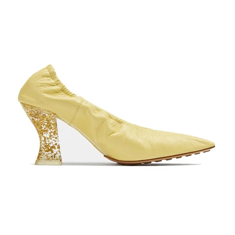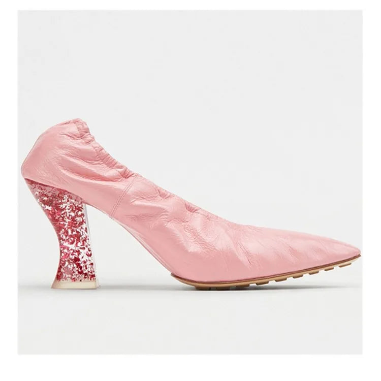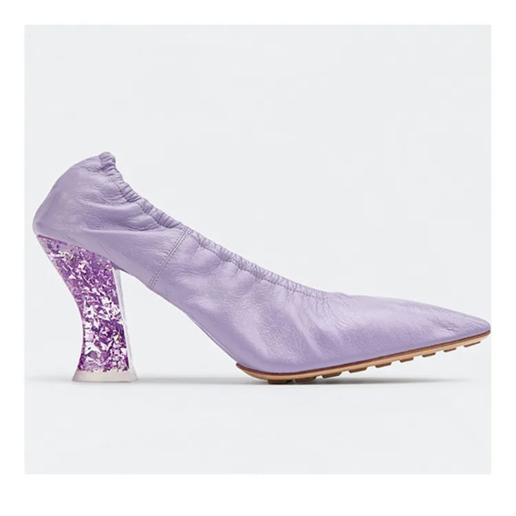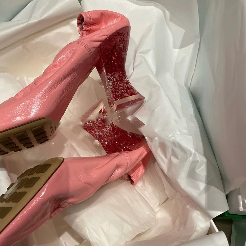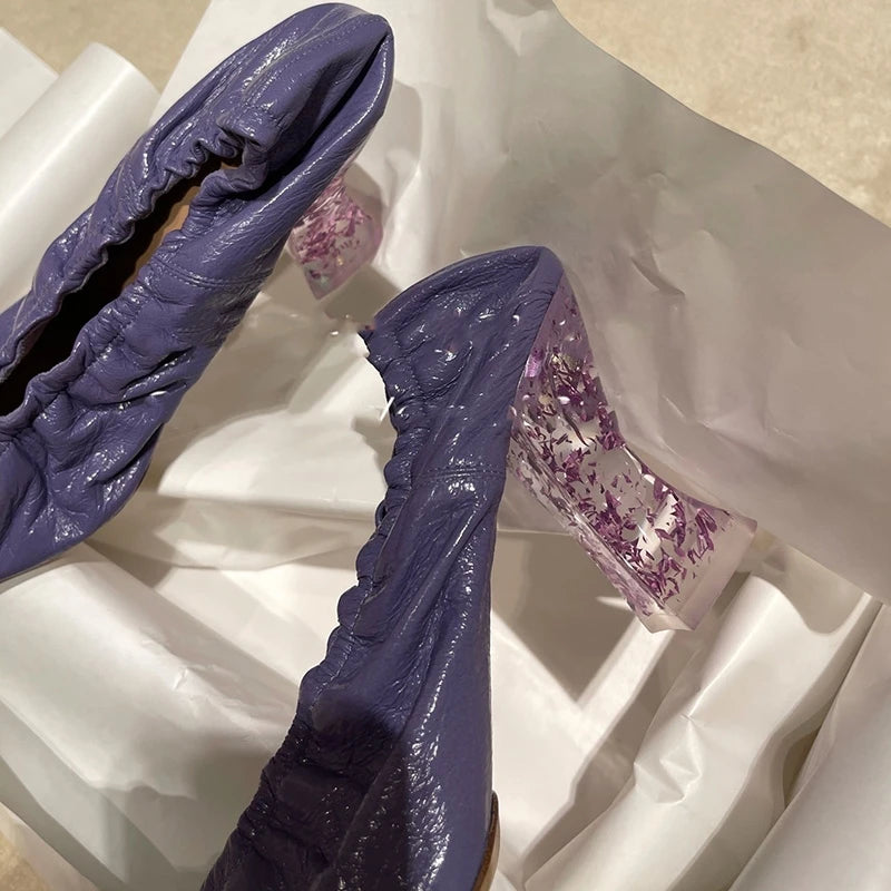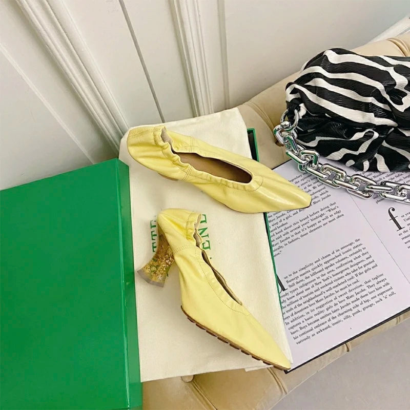 New Small Square Head Thick Heel Soft Leather Shallow Mouth Witch Shoes Crystal Heel Comfortable Retro High Heel Single Shoes