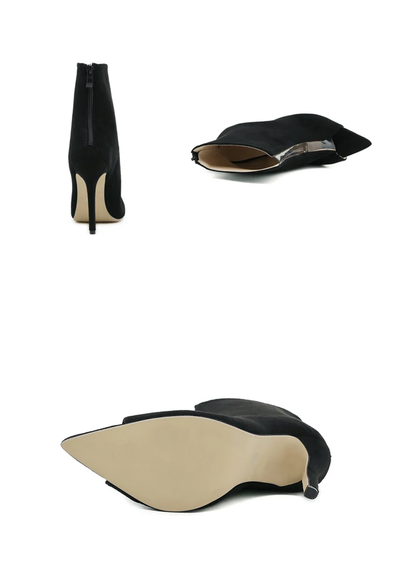 Spring Autumn Sexy Pointed Open Toe Ankle Boots Women Black High Heels Dance Shoes Fashion Zip Ladies Party Short Booties