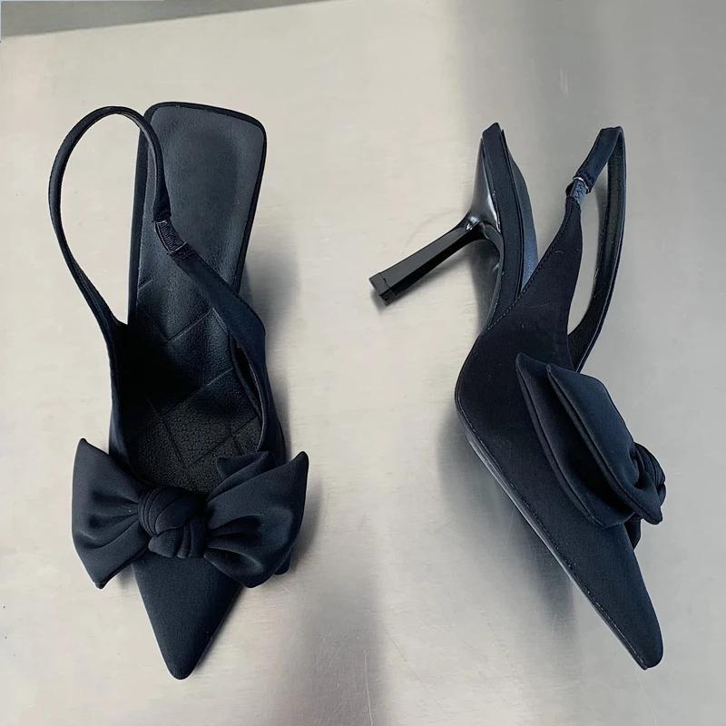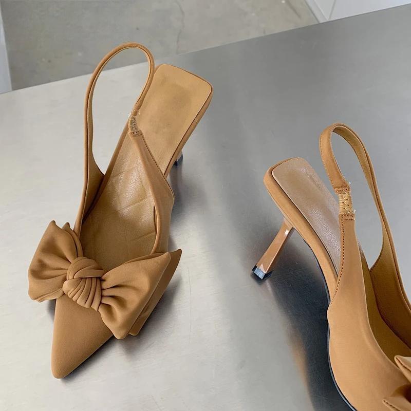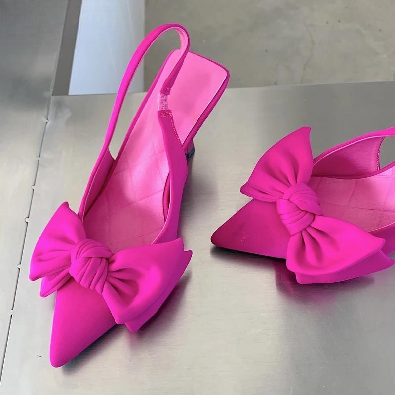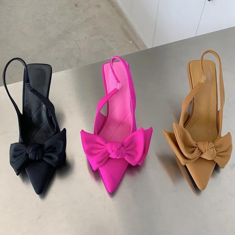 Spring Big Butterfly-knot Women Pumps Slingback Sandals Ladies Shallow Pointed Toe Mules Slip On Party High Heel Shoes