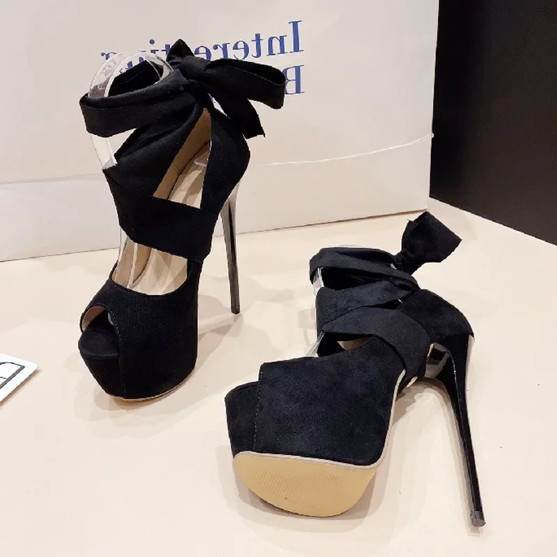 Spring Design Ankle Cross-Strap Peep Toe Women Pumps Sexy Platform Extreme Thin High Heels Nightclub Prom Shoes