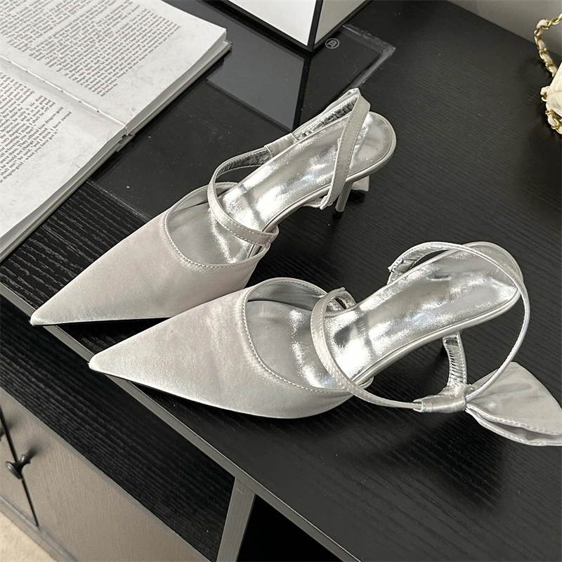 Spring Fashion Pleated Hollow Women Pumps Pointed Toe Low Thin Heels Elegant Party Slingbacks Mule Sandalias De Mujer