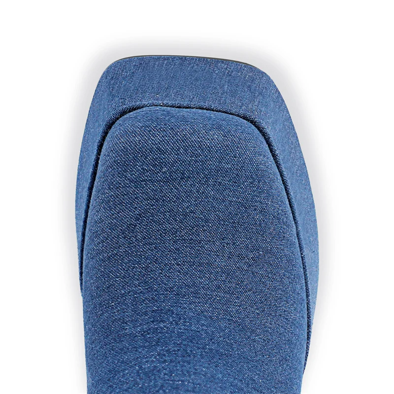Square Toe Denim Chunky Heel Platform Boots Thick High Heels