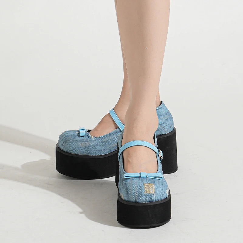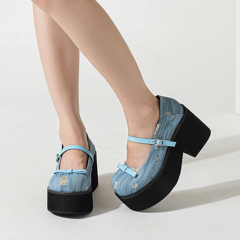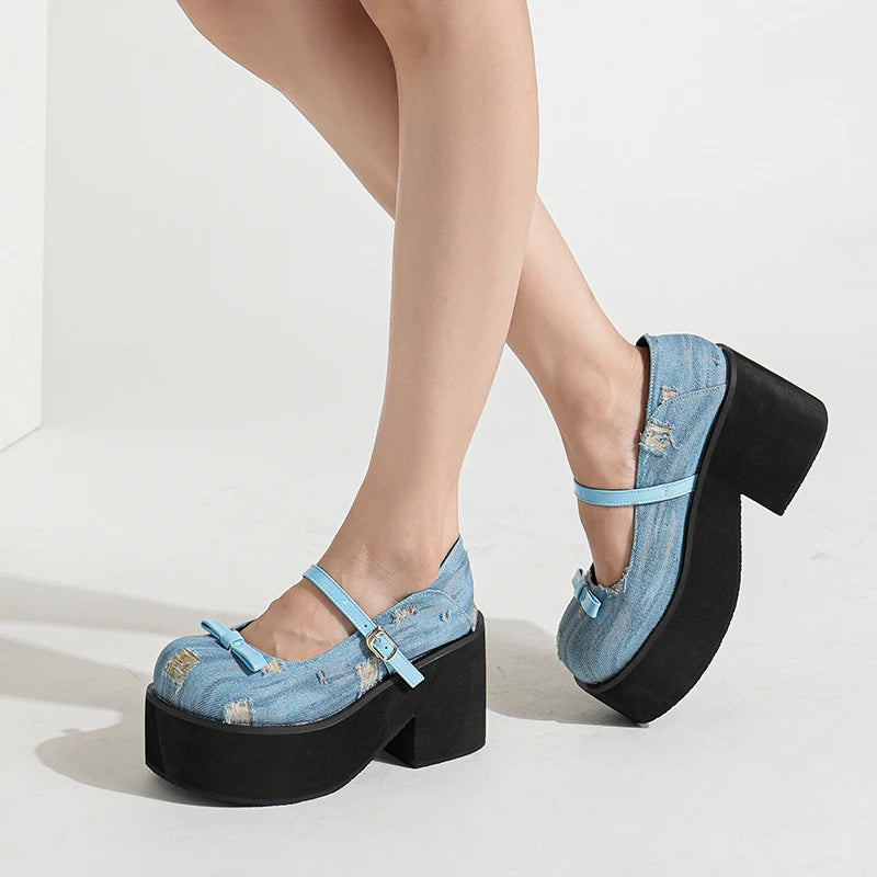 Street Style Blue Denim Platform High Heels Women Pumps Sandal