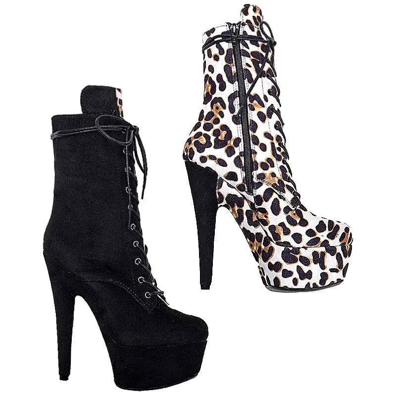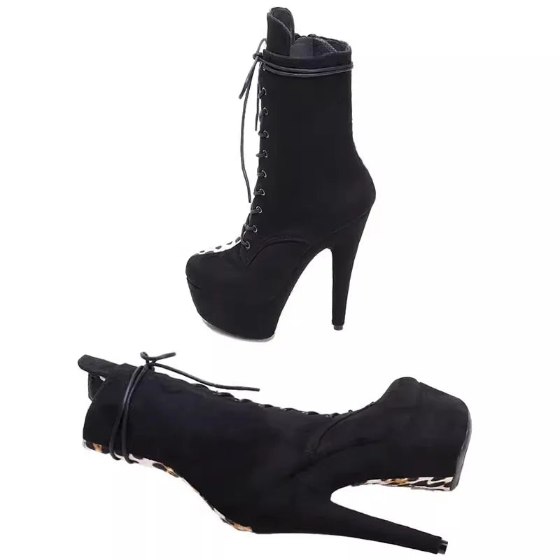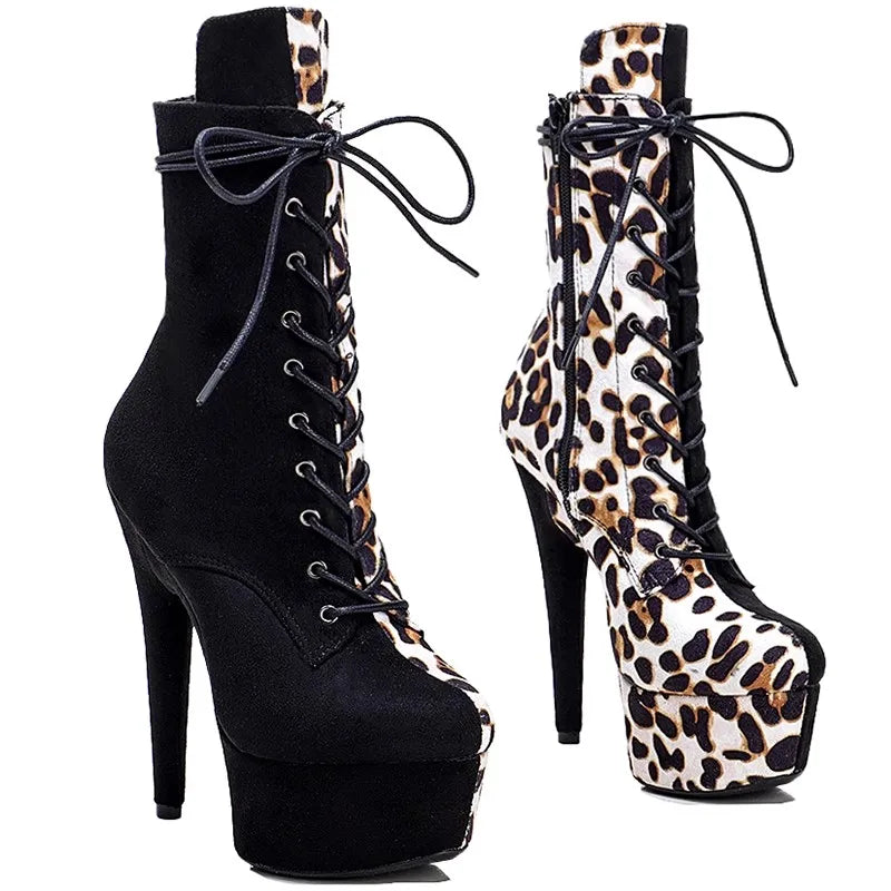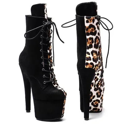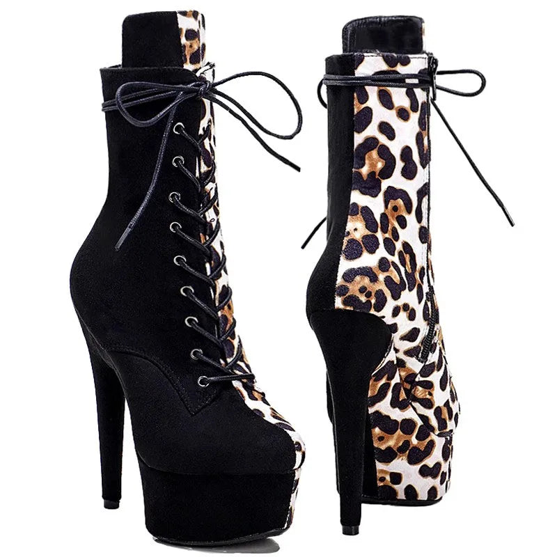 New Suede With Leopard Print Upper 15CM/6Inch Women's Platform Party High Heels Boots Pole Dance shoes