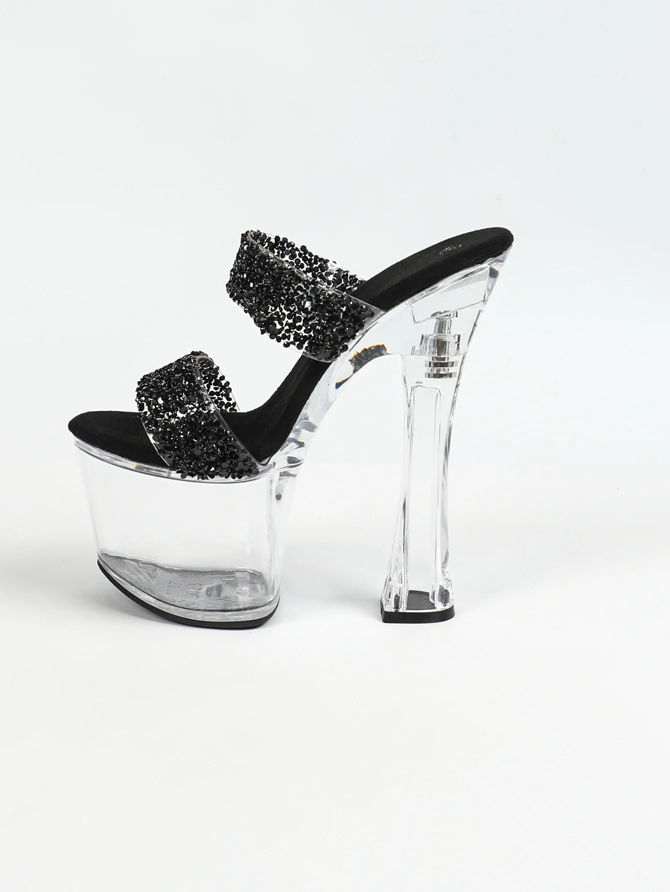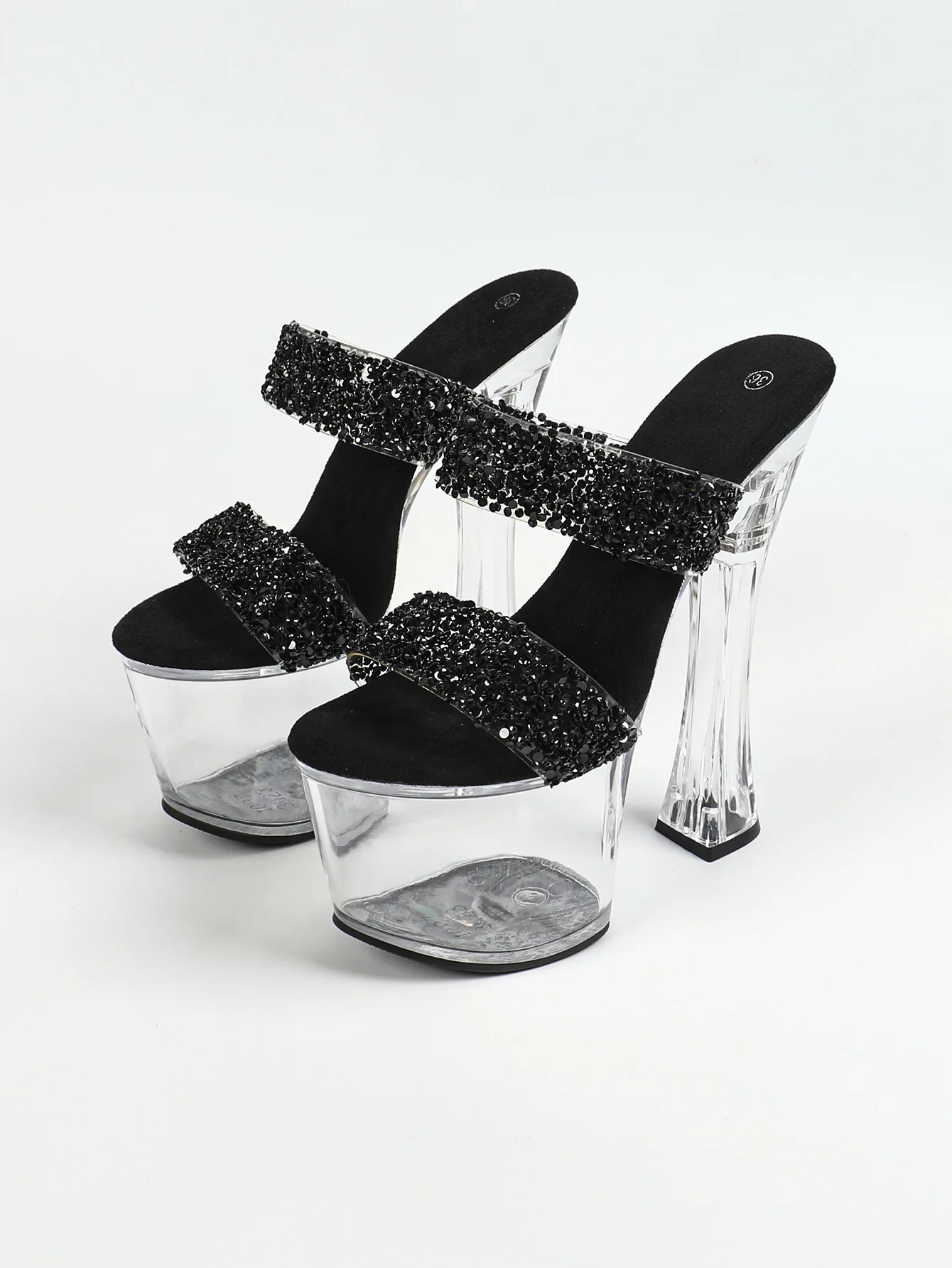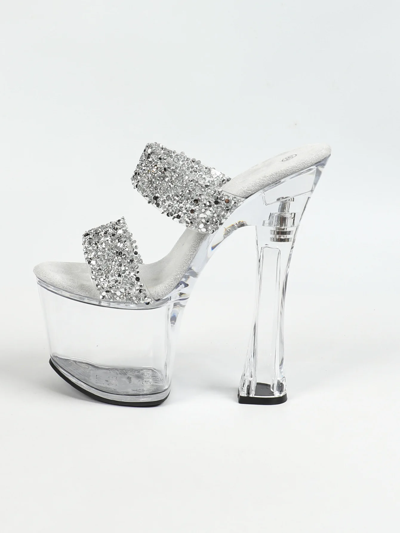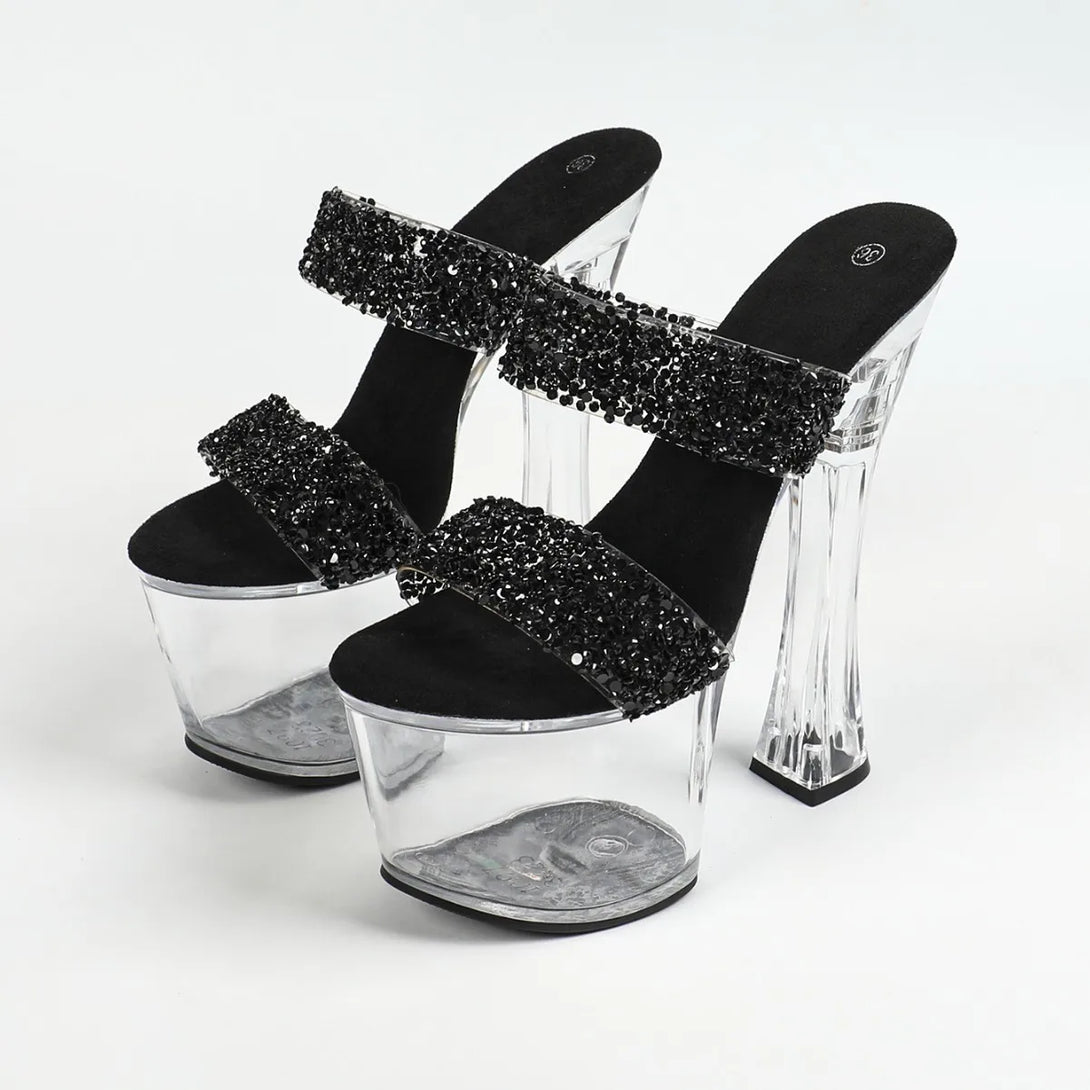 Summer 18CM Super Clear Thick High Heels Slippers Women Stage Platform Shoes Nightclub Pumps Bling Sequin Rhinestone Sandals