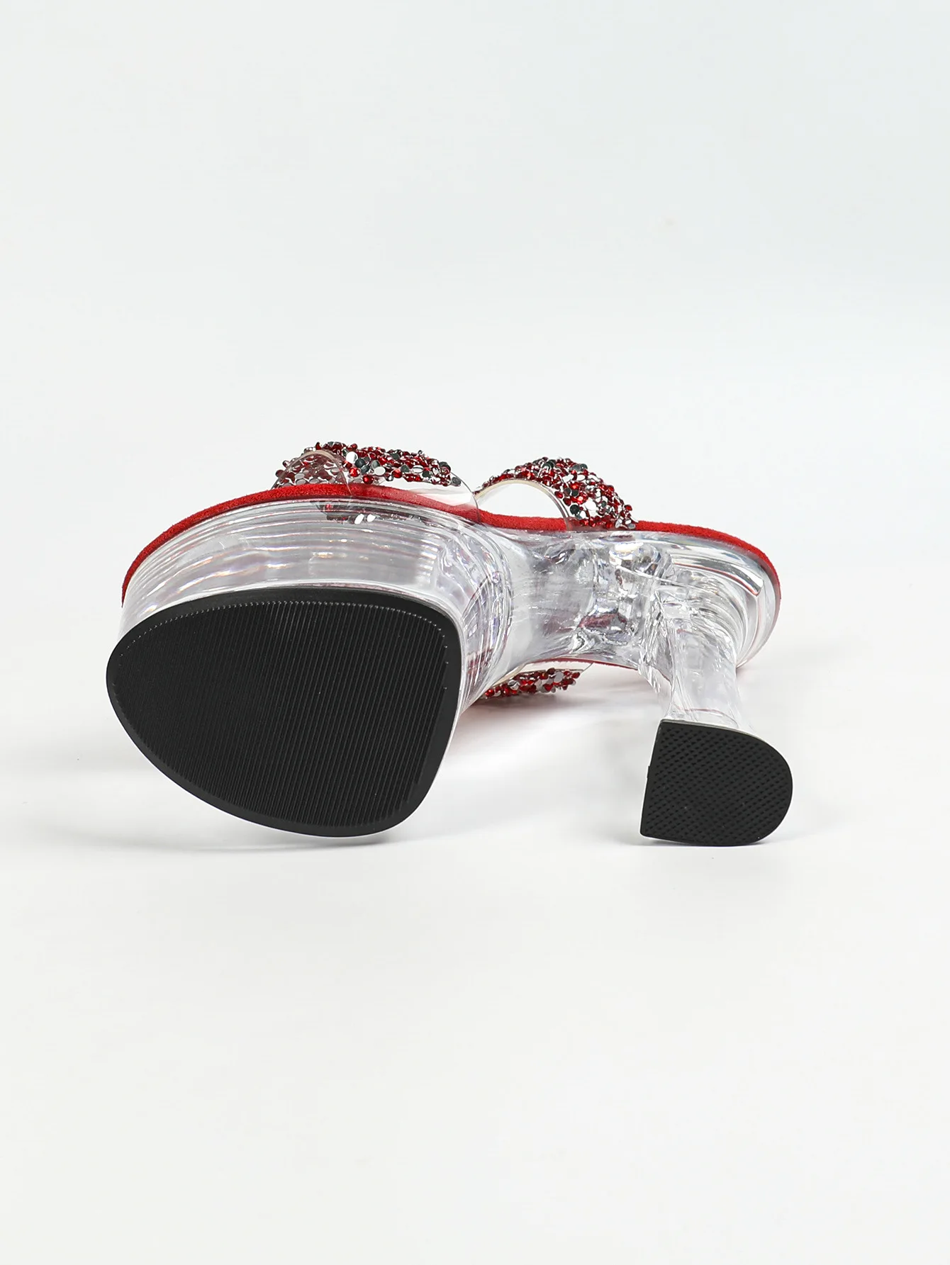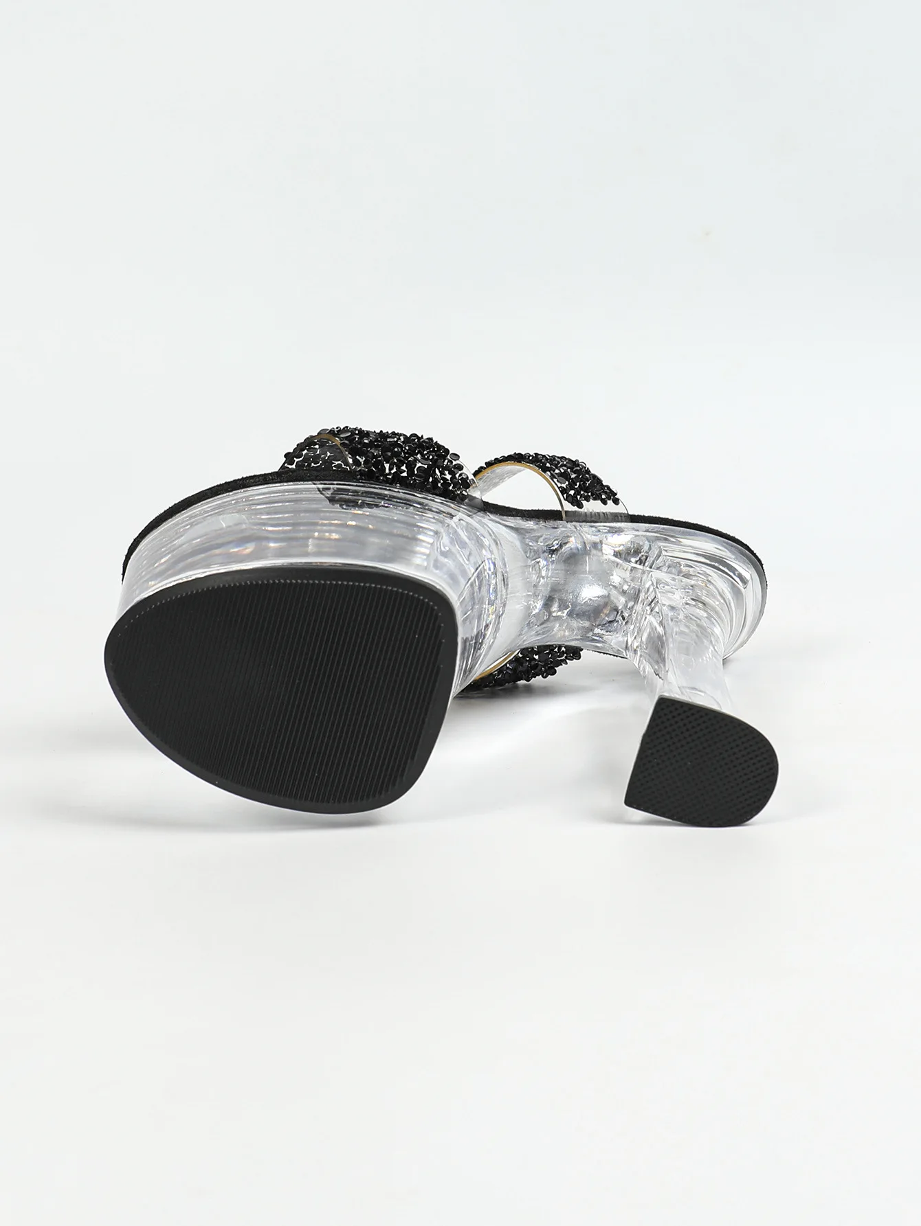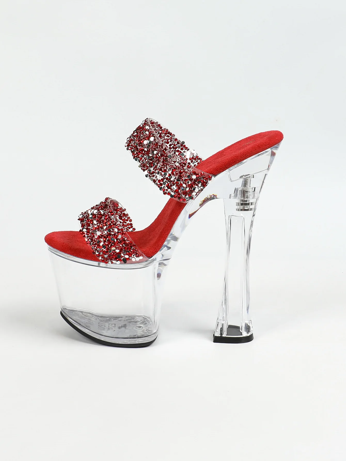 Summer 18CM Super Clear Thick High Heels Slippers Women Stage Platform Shoes Nightclub Pumps Bling Sequin Rhinestone Sandals