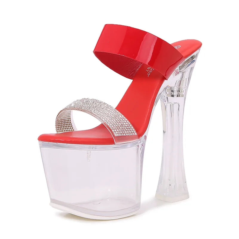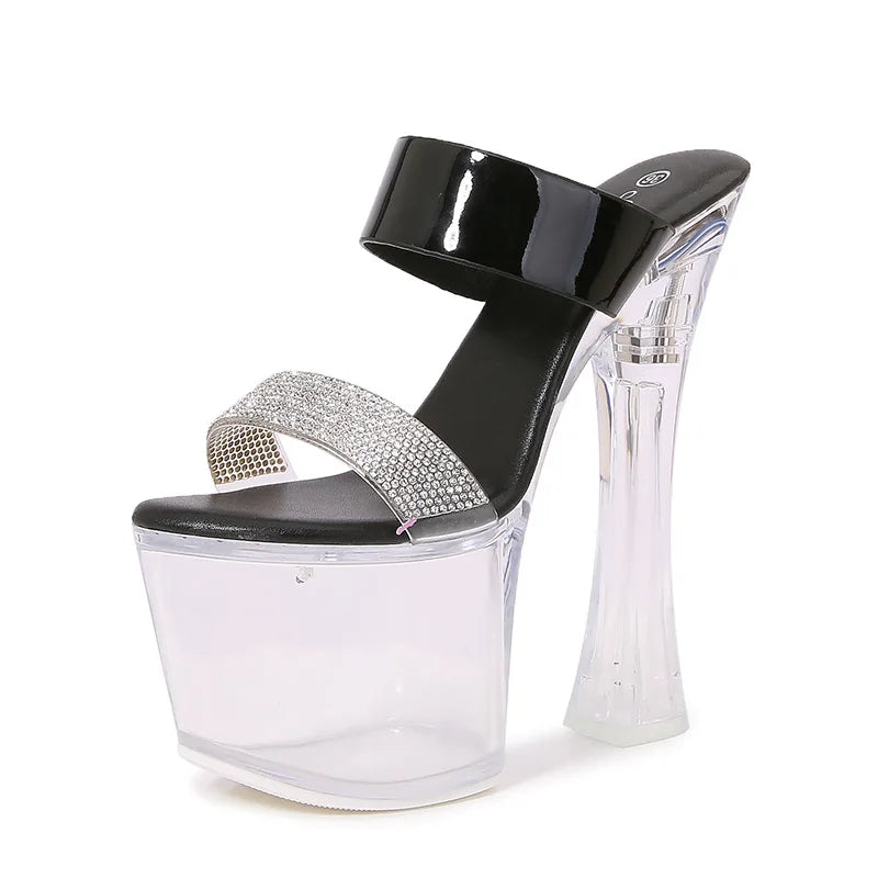 Summer 18CM Super Clear Thick High Heels Slippers Women Stage Platform Shoes