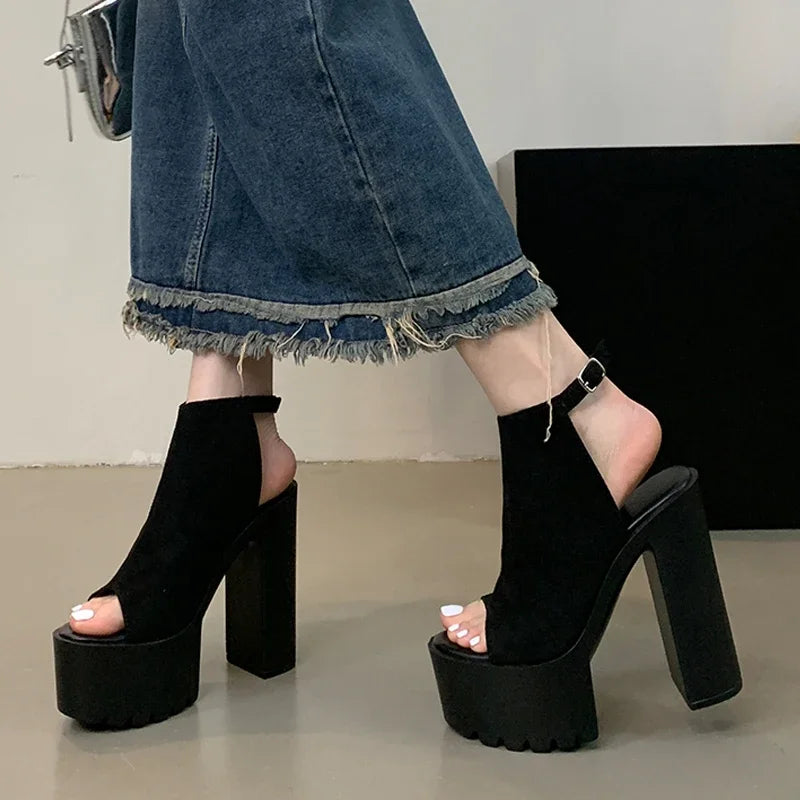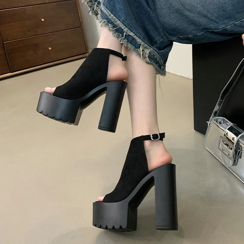 Summer Chunky Platform Open Toe Women Sandals Concise Buckle Strap Square High Heels Shoes Large Size 43