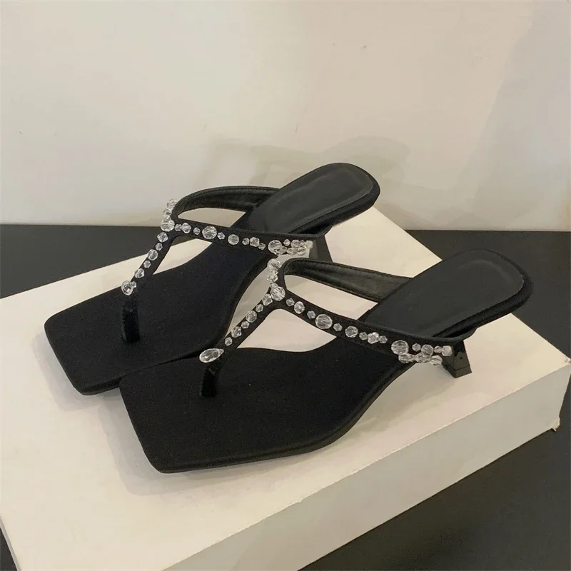 Summer Crystal Diamond Women Slippers Street Style Clip Toe High Heels Ladies Sandals Fashion Slides Flip Flops Shoes