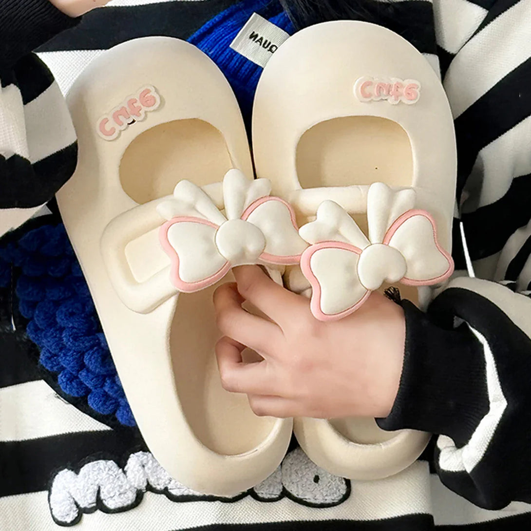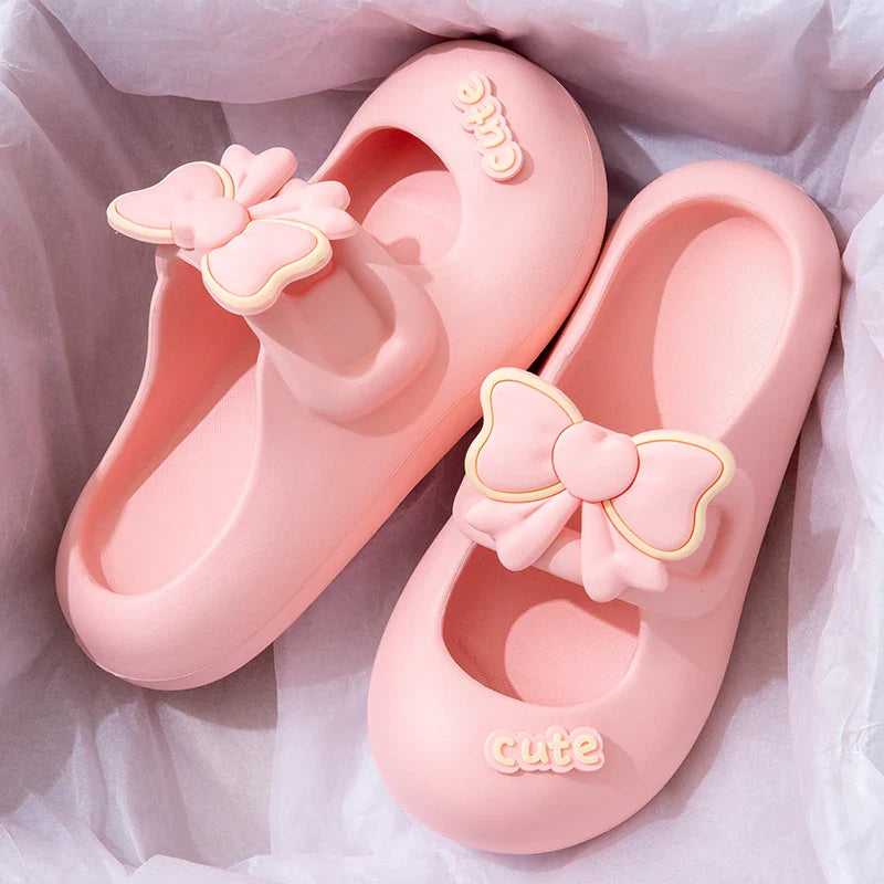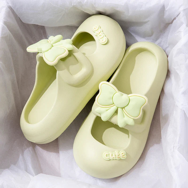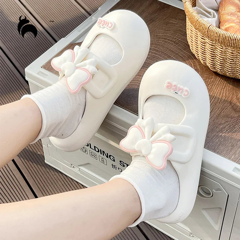 Summer Cute Style Solid Color Mary Jane Bow Tie Baotou Home Sandals and Slippers
