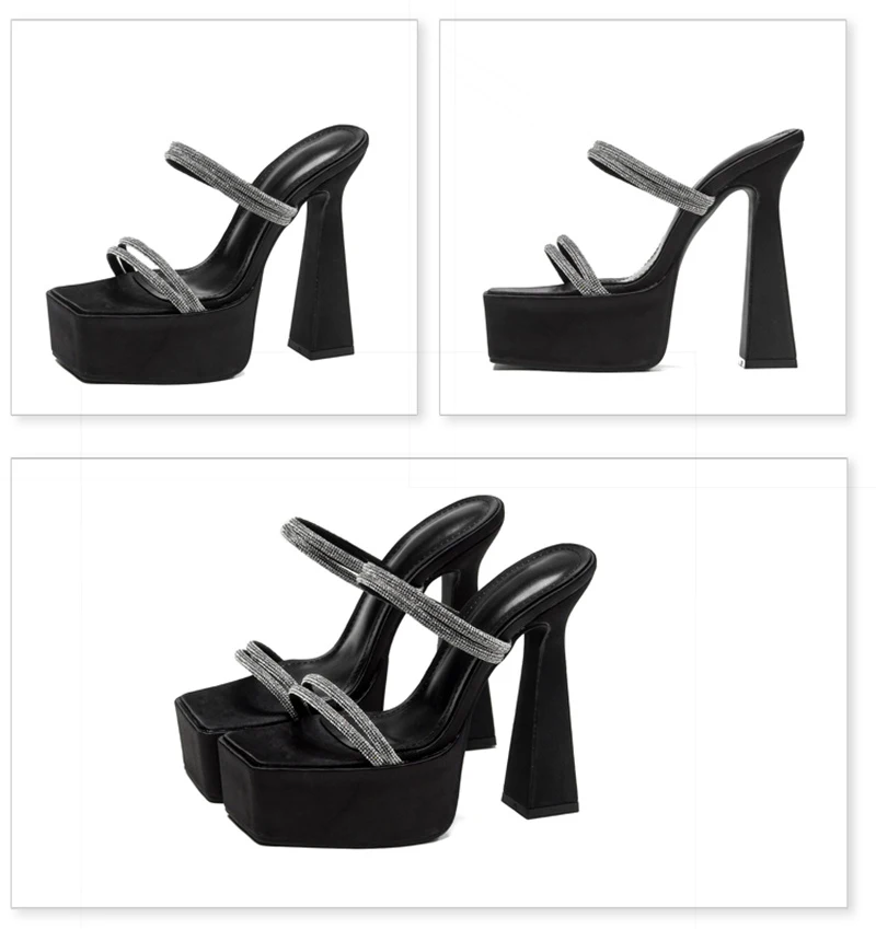 Summer Extreme High Heels Platform Slipper Fashion Glitter Rhinestones Ladies Sandal