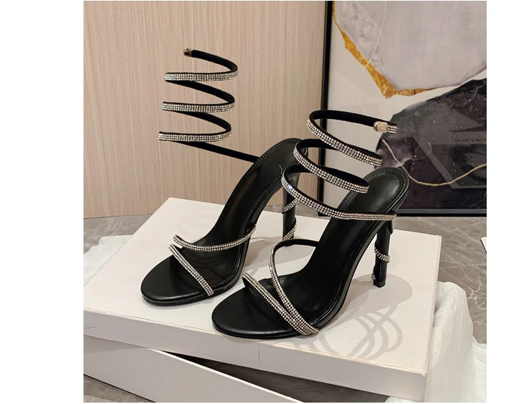 Summer Fashion Crystal String Bead Sandals Women's Stiletto High Heel Wrap Strap Open toed Banquet Shoes Zapatos Mujer
