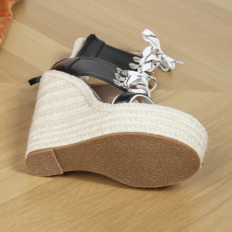 Summer Fashion Hollow Out Peep Toe Platform Women Wedges Sandals Designer Zipper Cross-tied Banquet Shoes