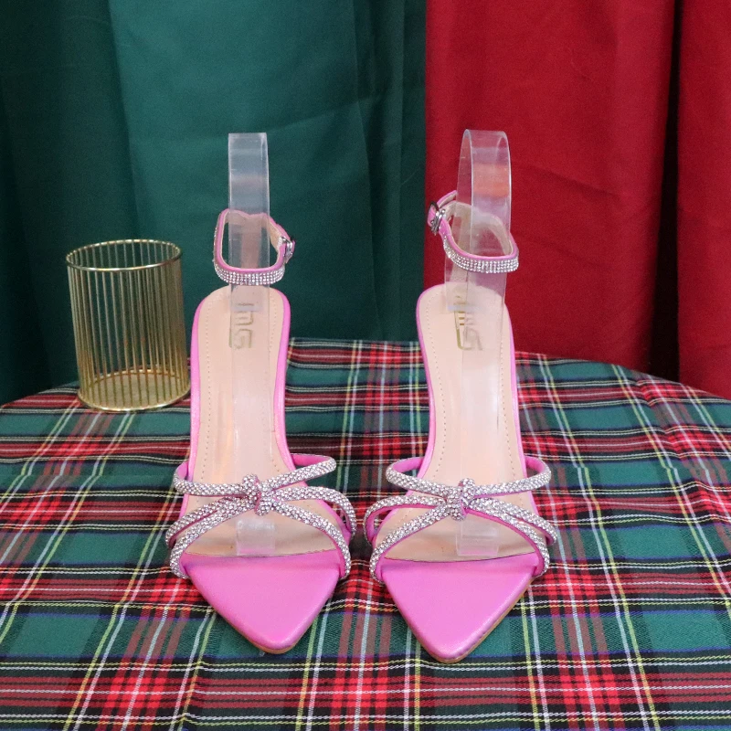 Summer New elegant High-heeled Sandals Fashion Flash Diamond Pointed Temperament High-heeled Shoes plus size women's shoes