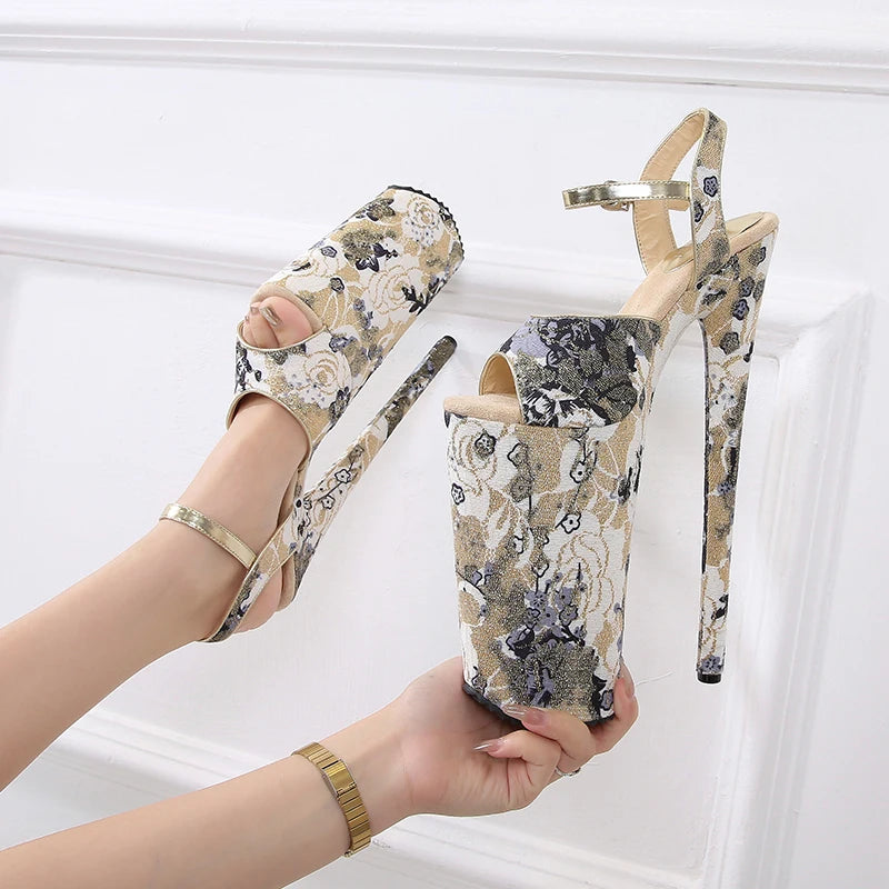 Summer Peep Toe 26cm Thin High-Heeled Sandals female 16cm Platform bridal shoes woman Steel Pipe Dance Embroidery Wedding Pumps