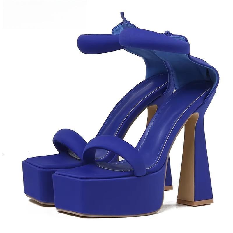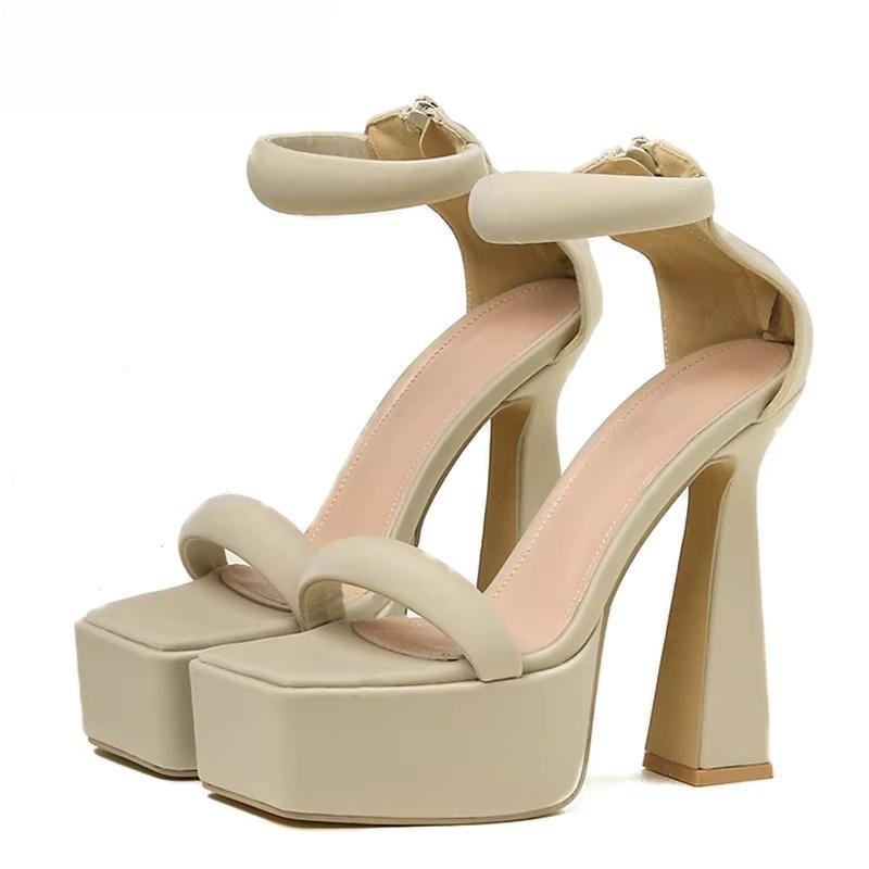Summer Peep Toe Women Sandals Platform Heels Chunky Sexy Ankle-Wrap Ladies ZIP Sandals