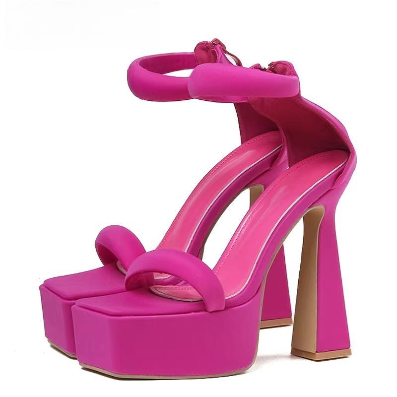 New Summer Peep Toe Women Sandals Platform Heels Chunky Sexy Ankle-Wrap Ladies ZIP Sandals Club Stripper Shoes