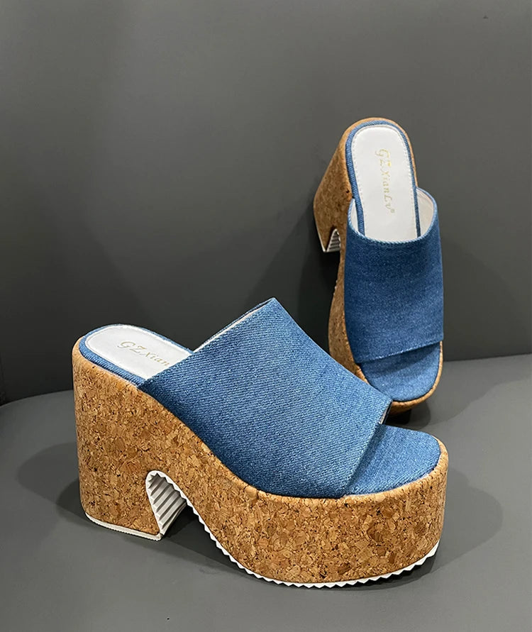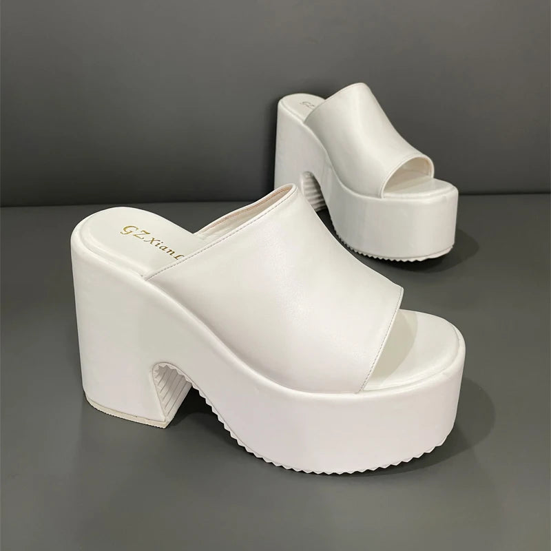 Summer Round Toe Slippers Women Bridal Shoes Platform Sandal Female 11cm