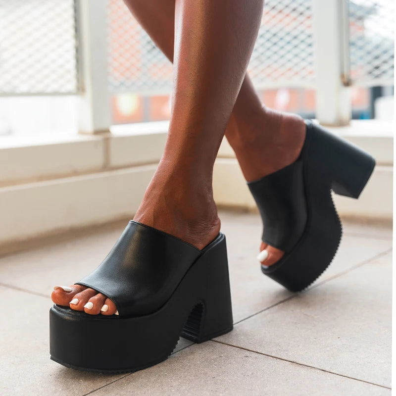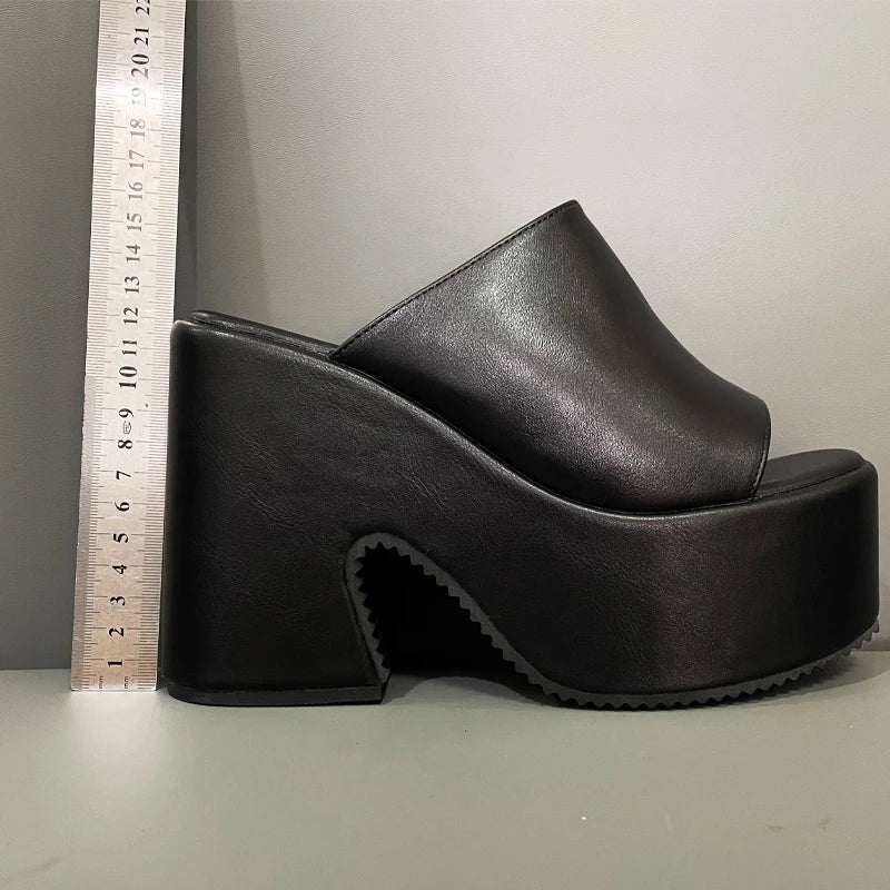 Summer Round Toe Slippers Women Bridal Shoes Platform Sandal Female 11cm Catwalk Shows Dance Party Big Size Wedges Pumps
