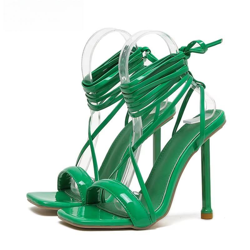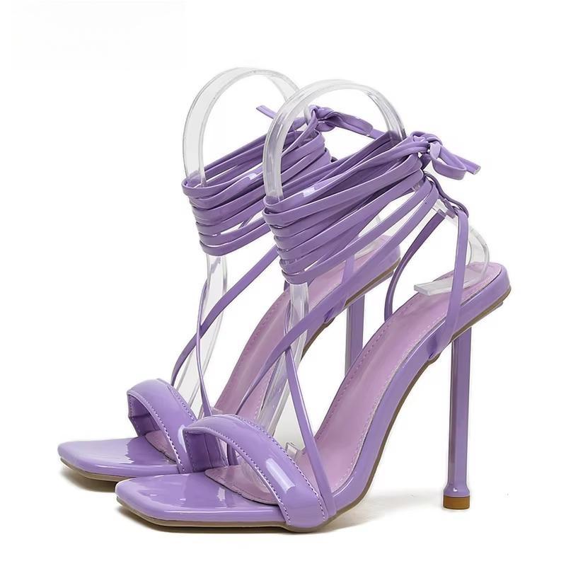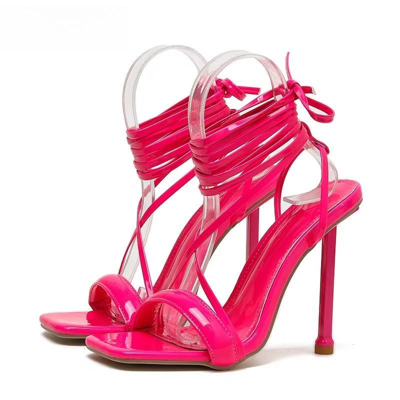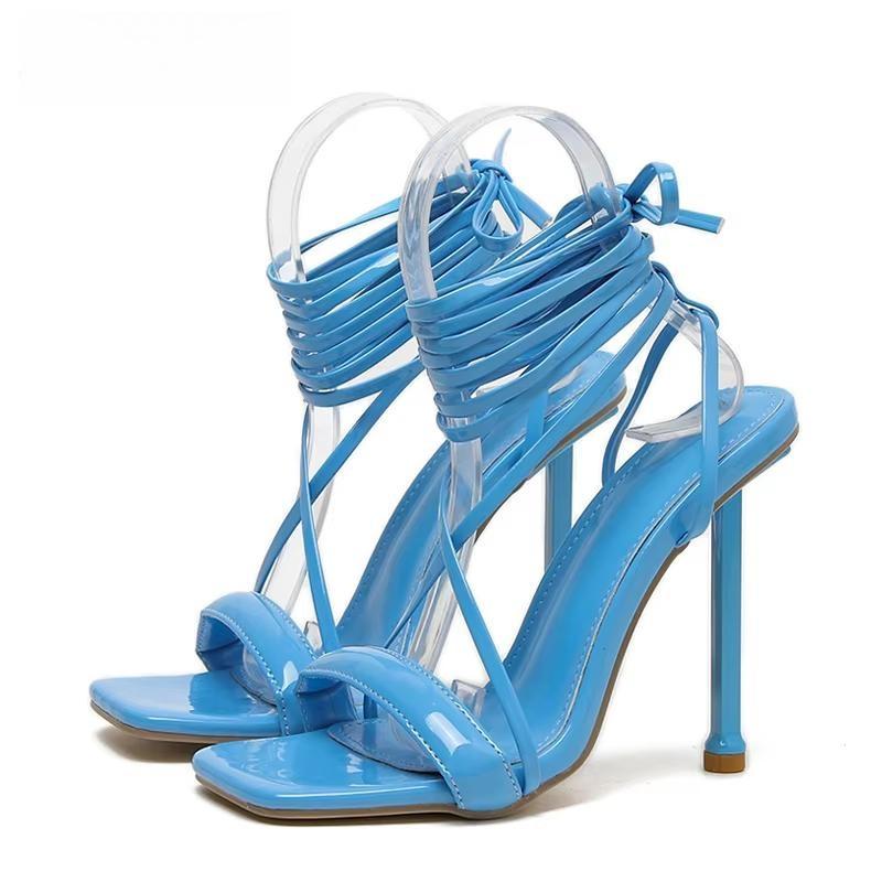 Summer Square Toe High Heel Women Sandals Sexy Narrow Band Ankle Strap Ladies Club Stripper Shoes