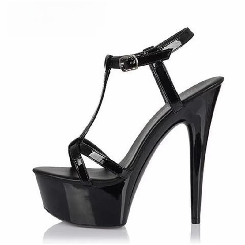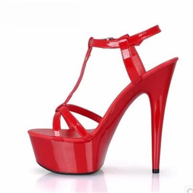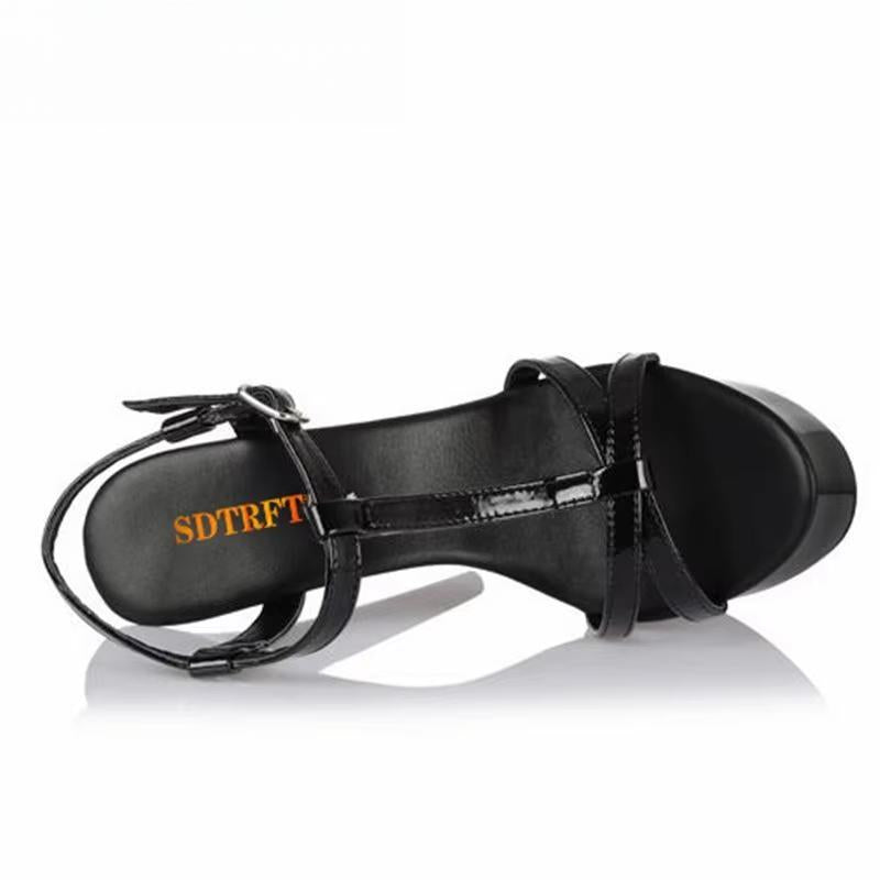 Plus:34-43 44 SUMMER Stilettos zapatos mujer Peep Toe sandals 15cm thin heels platform T-strap shoes woman wedding pumps