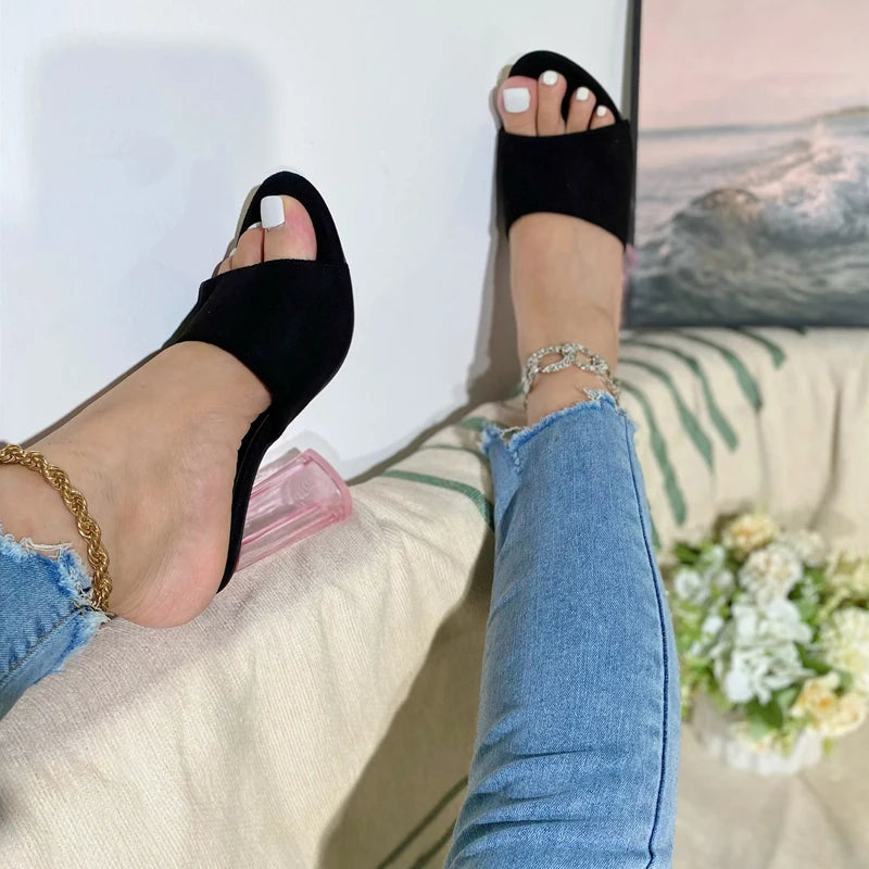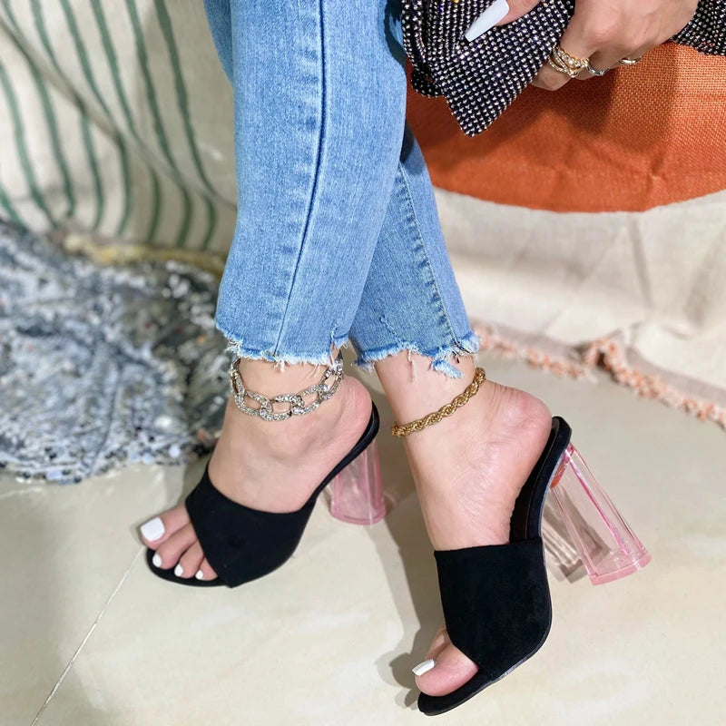 Summer Transparent Round Heel Women Slipper Fashion Peep Toe Ladies Slides Dress Party Sandals Zapatos Mujer