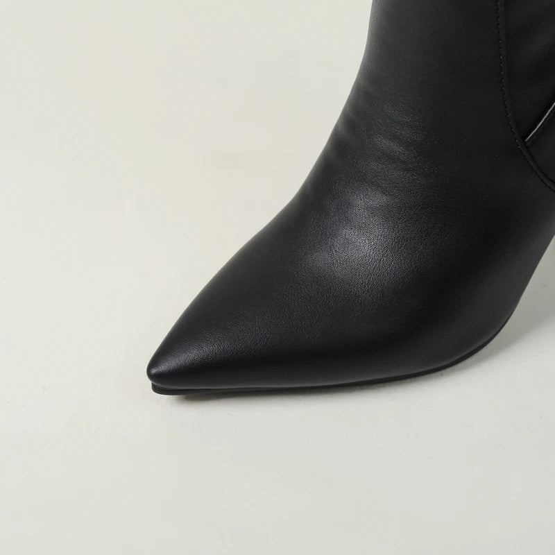 White Black Brown Women Knee Boots Pointed Toe Square High Heel Ladies Calf Boots