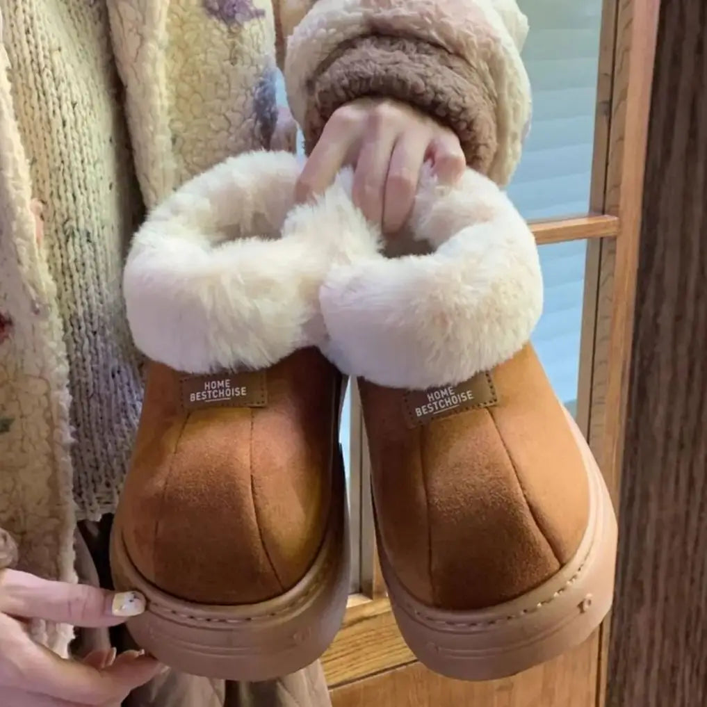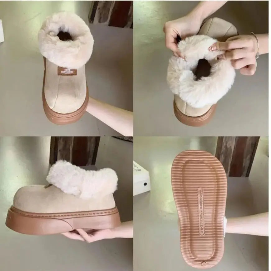 Snow Boots Women Winter Christmas Outer Velvet Thickened Northeast Cotton Shoes Thick Bottom Short Boots Anti-slip Soft Warm