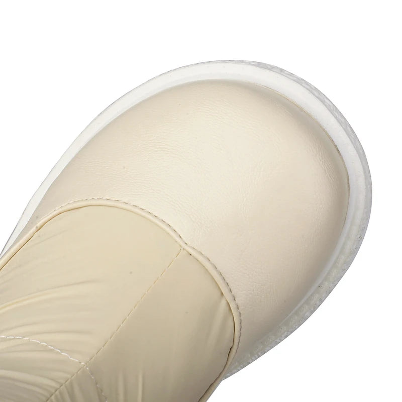 Winter Women Snow Boots Platform Flat with Ladies Ankle Boots PU Leather Round Toe Warm Plush Fashion Women Boots Big Size