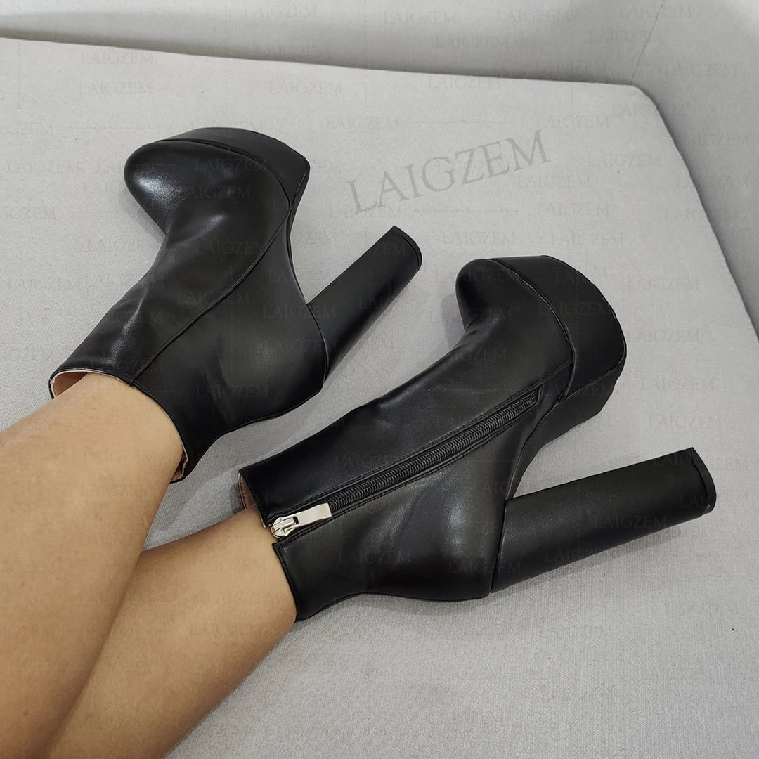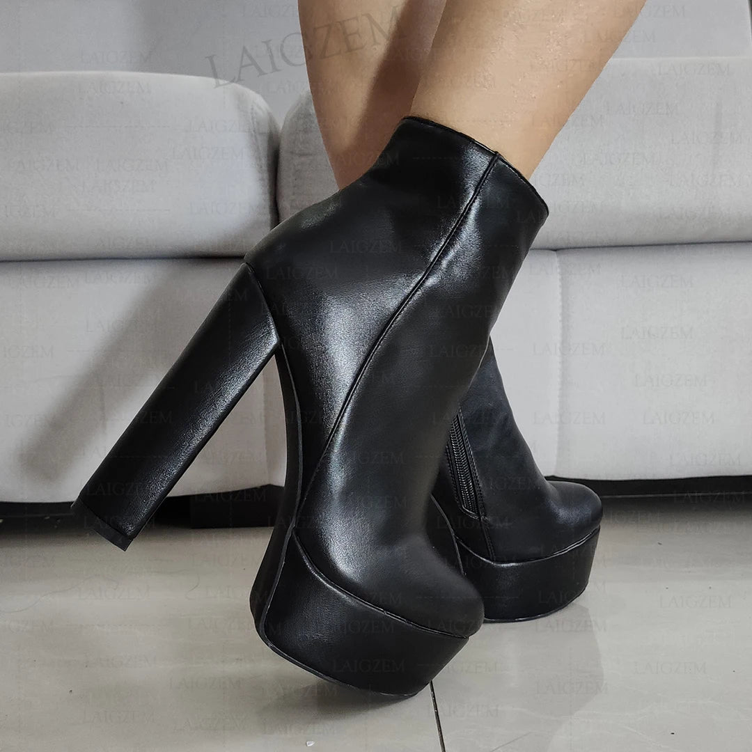 Women Ankle Boots Platform Side Zip Thick High Heels Short Booties Black Party Ladies Shoes Woman Big Size 41 44 47 52