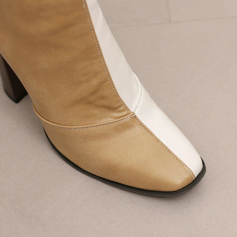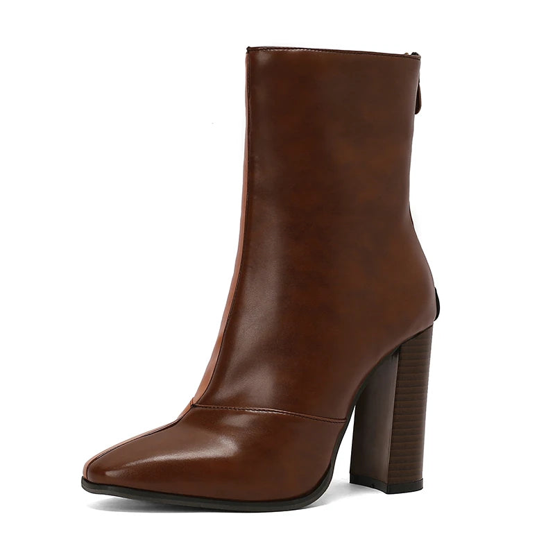 New Women Ankle Boots Thick High Heel Square Toe Ladies Short Boots PU Leather Mixed Color Side Zipper Women Boots Big Size