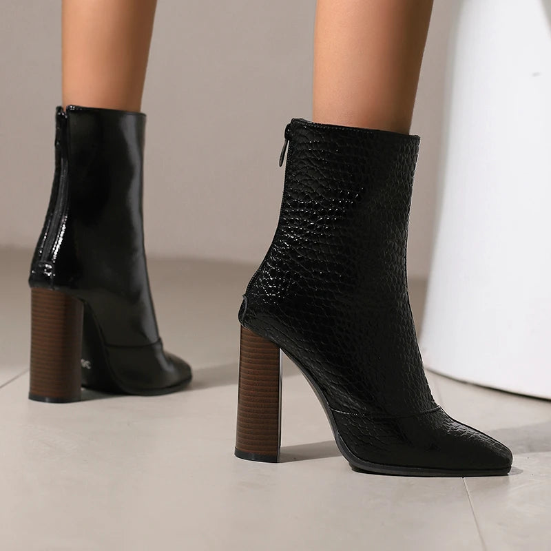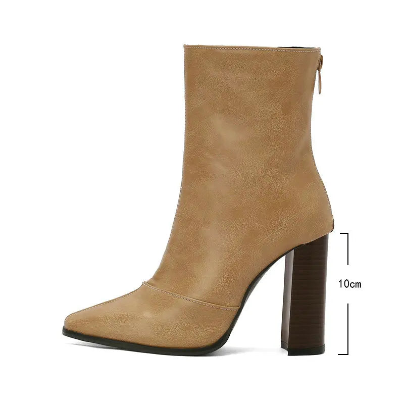 Women Ankle Boots Thick High Heel Square Toe Ladies Short Boots