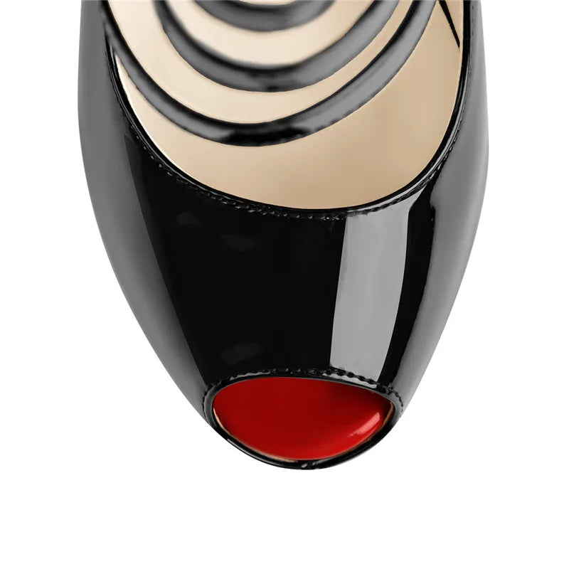 Women Black Peep Toe Mary Jane Platform Buckle Pumps