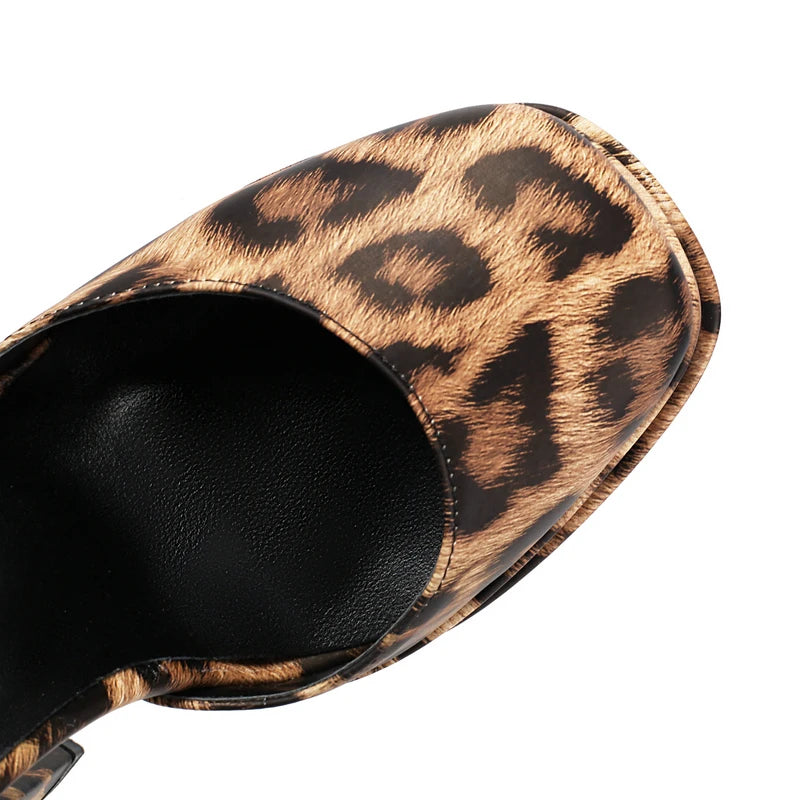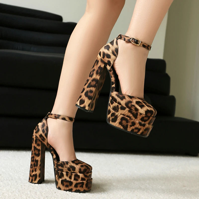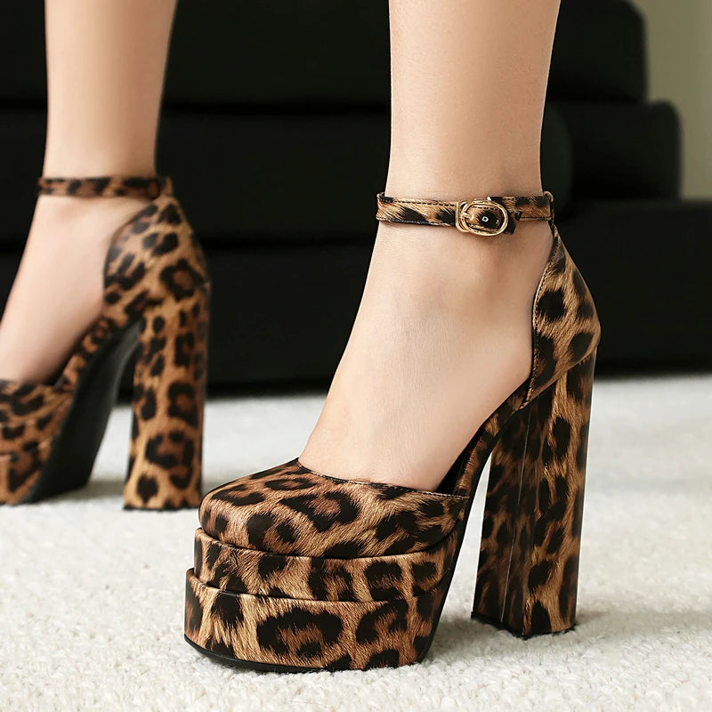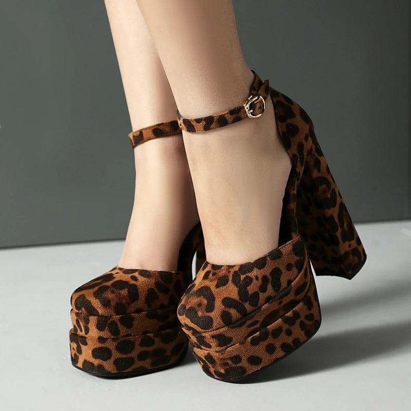 Women High Heel Shoes Platform Thick High Heel Ladies Pumps PU Leather Square Toe Buckle Party Women Shoes