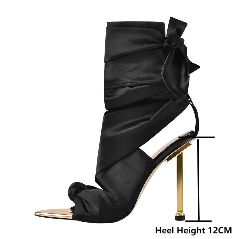 Women Lace Up Evening Gladiator Party Stilettos High Heel Sandals Knot Satin Sexy Noble Dress Black Heels