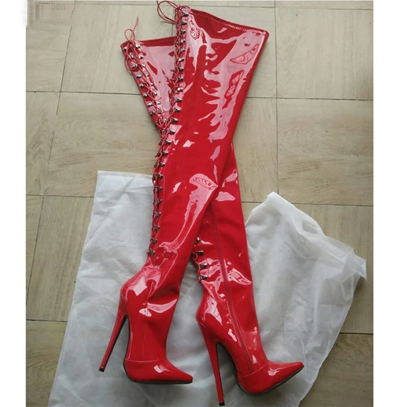 Women Over The Knee Boots 18CM Super High Heel Stiletto Sexy Back Cross-tied Stretch PU Leather Thigh Long Boots