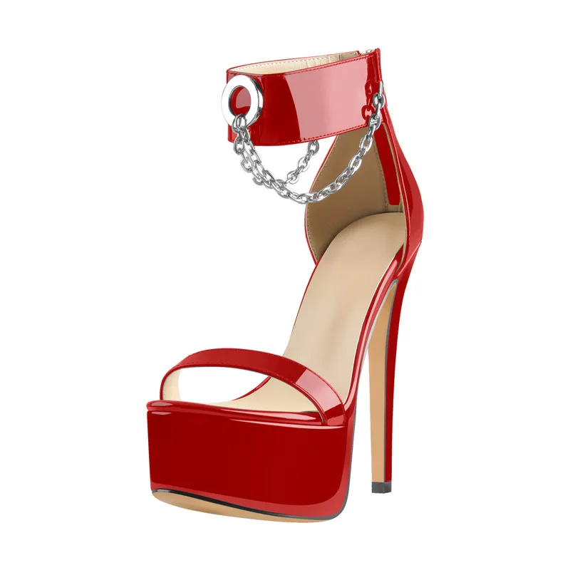 Women Peep Toe Chain Zipper Platform Stiletto Single Band High Heel