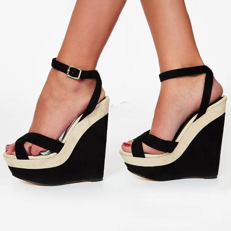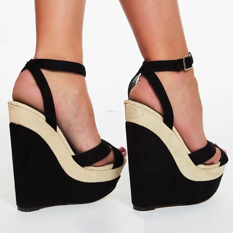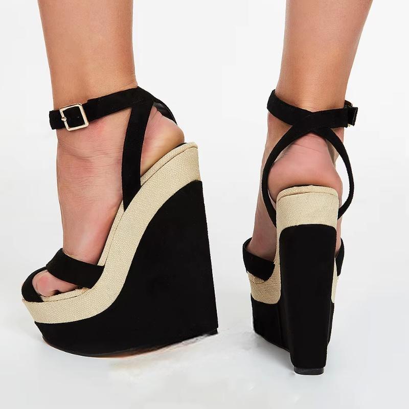 Women Platform Wedge Pumps Faux Suede Patchwork Height Increase Sandals