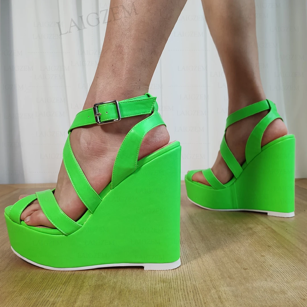 Women Platform Wedges Sandals Faux LeatherAnkle Strap Open Toe High Heels Pumps Ladies Shoes Woman Big Size 41 43 46 52