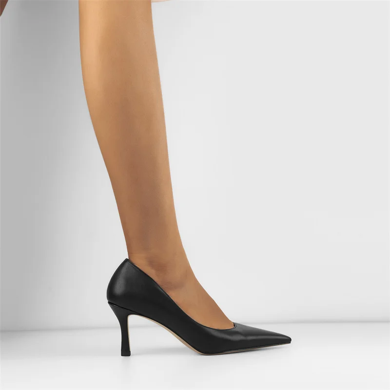Women Pointed Toe Office Lady Slip on Thin High Heels Black Matte PU Pumps Elegant Concise Party Dress Pumps