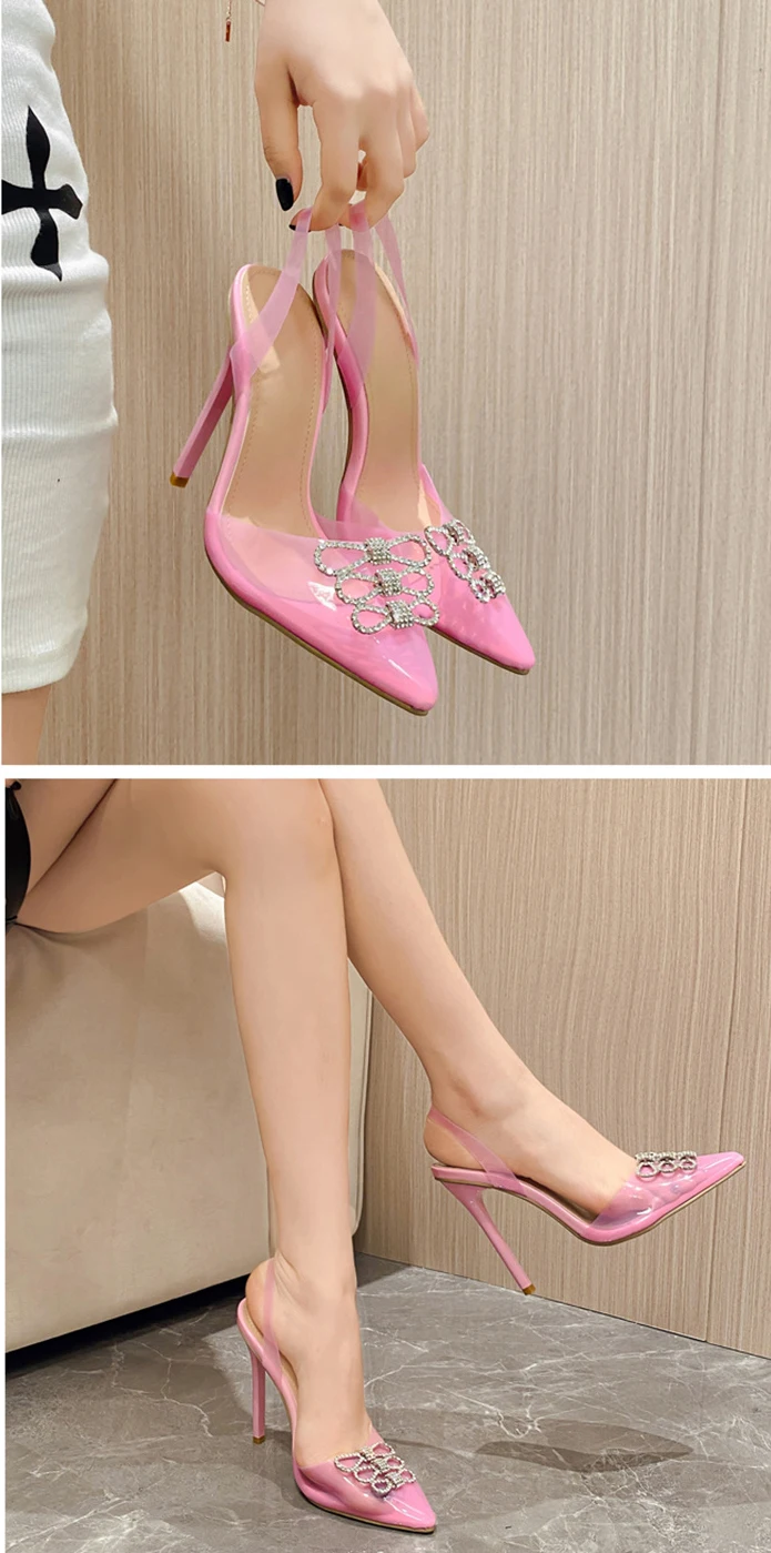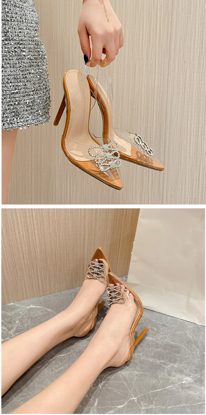 Brand Women Pumps Crystal Bowknot Buckle PVC Transparent High Heels Fashion Wedding Bride Pointed Toe Shoes Stiletto