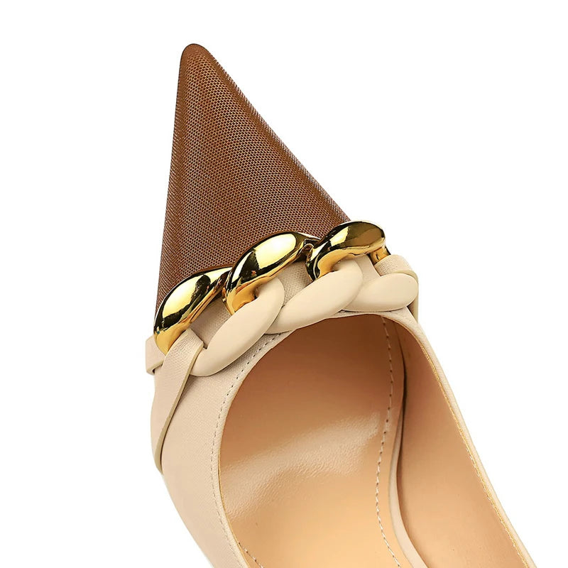 Shoes Women Pumps Metal Chain Decoration High Heels Mixed Colors Pointed Stilettos Lady Heels Party Shoes Female Pumps