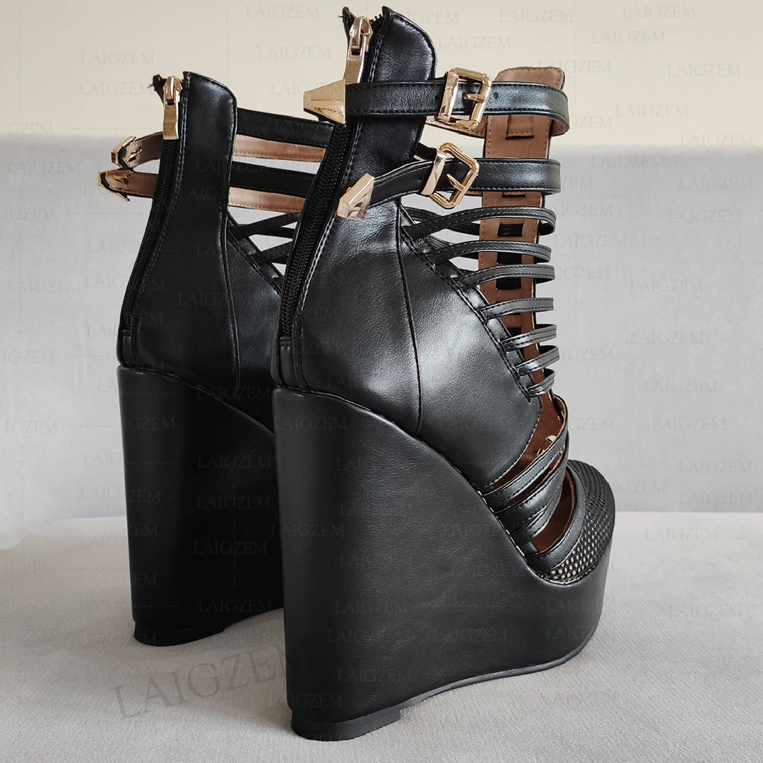 Women Pumps Platform Wedges Patchwork Back Zip Up Round Toe Sandals Ladies Female Party Shoes Woman Big Size 39 42 45 52