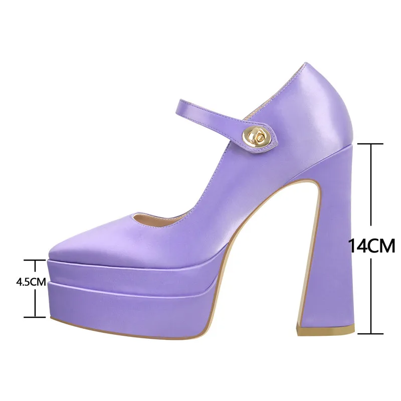 Women Purple Platform Pointed Toe Pumps Chunky High Heels Ankle Strap Party Dress Big Size Female Fashion Shoes