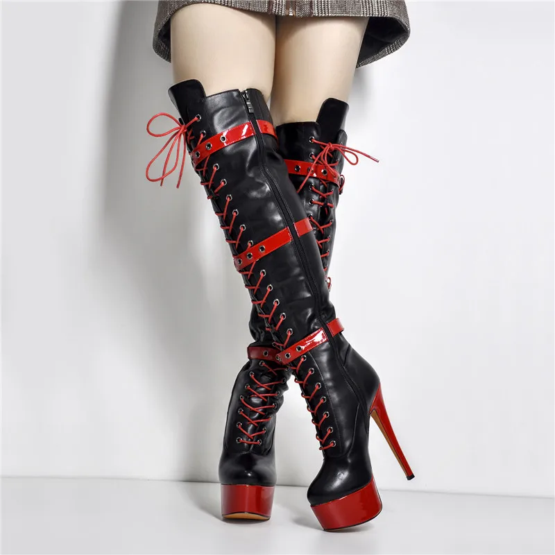 Women Red Wine Platform Over The Knee High Boot Zip 16cm High Heel Stiletto Stretch Pus Size US5~US15 Woman Boots