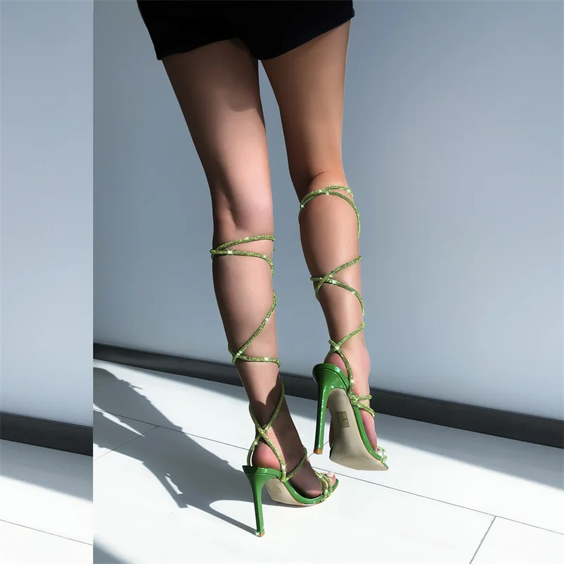 Women Rhinestone Summer Sandals Crystal Lace-Up Stiletto